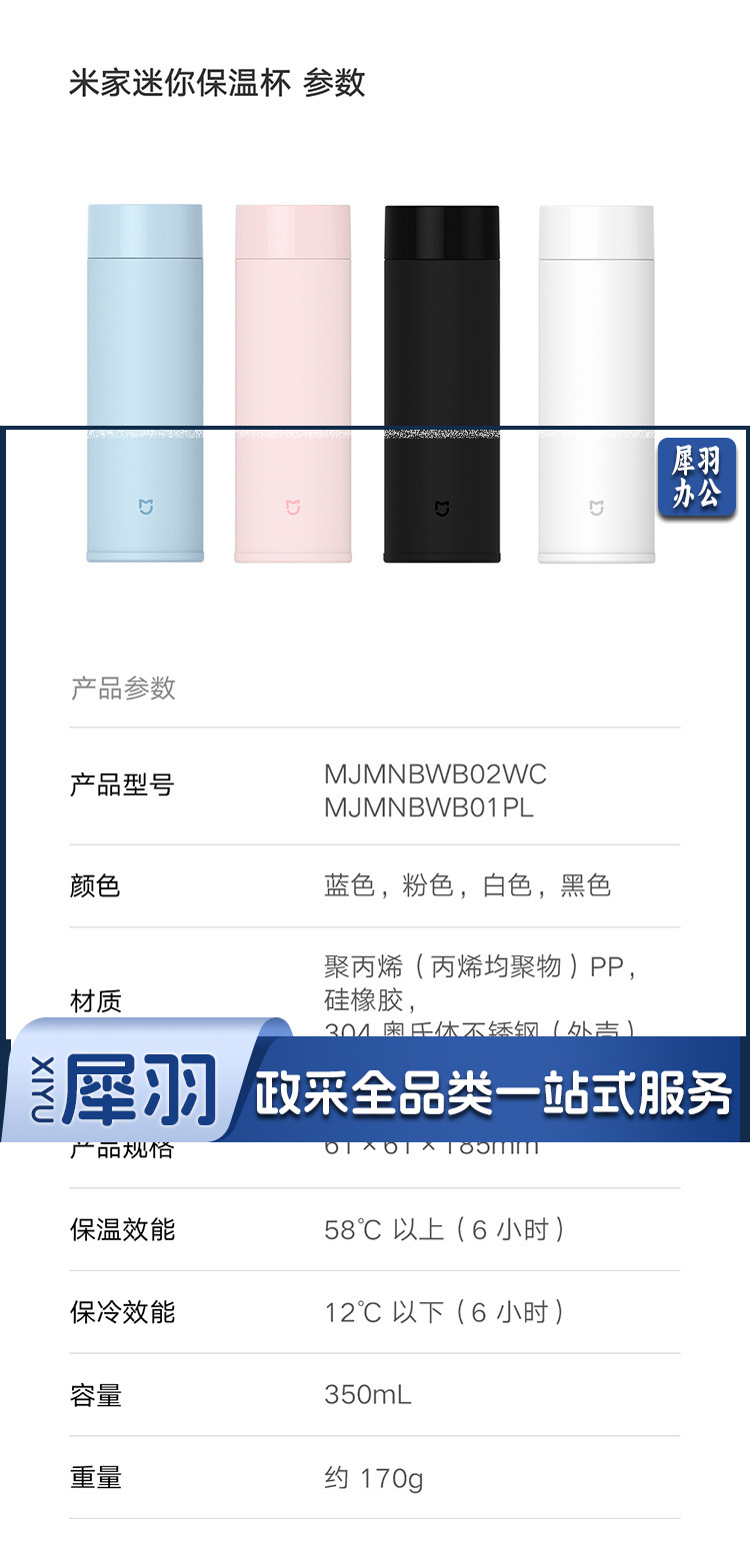 米家迷你保温杯350mL mini保温杯长效保温保冷水具健身运动水杯黑色