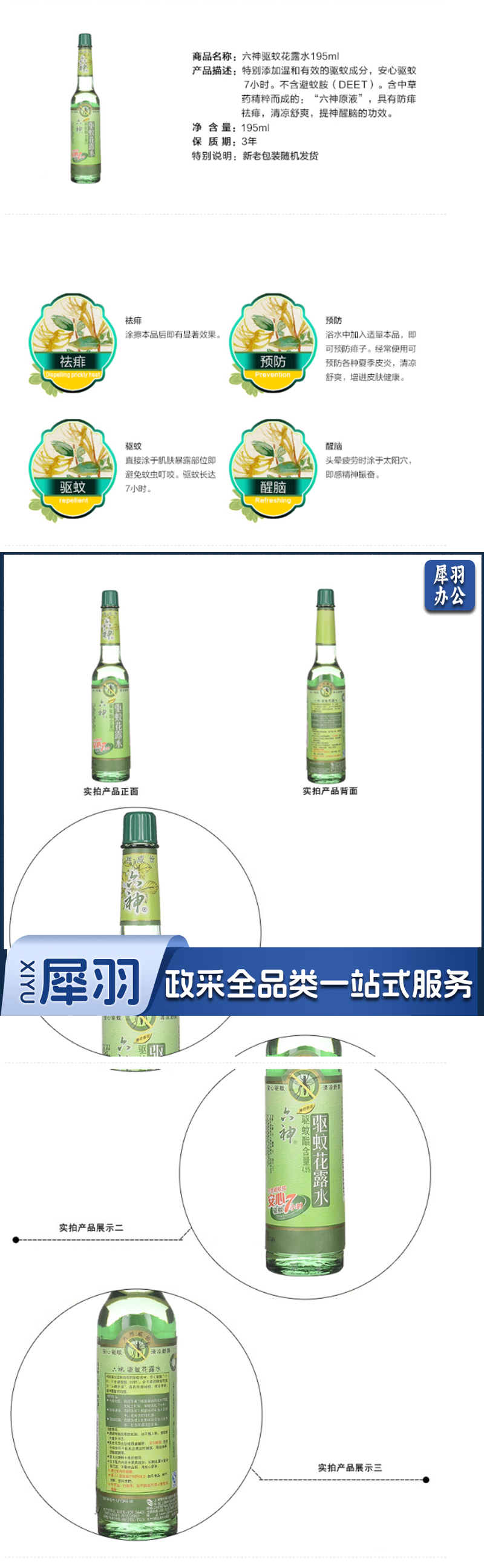 六神(LIUSHEN) LSHLSQW195ML 驱蚊花露水195ml