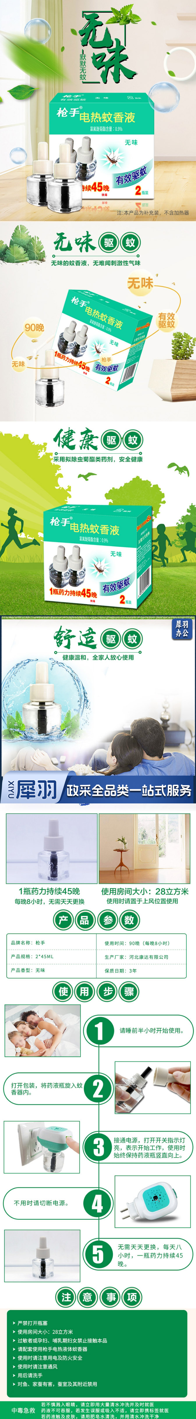 枪手无味45ml 电热蚊香液 2瓶装 补充装90晚 无香型 驱蚊液 电蚊香