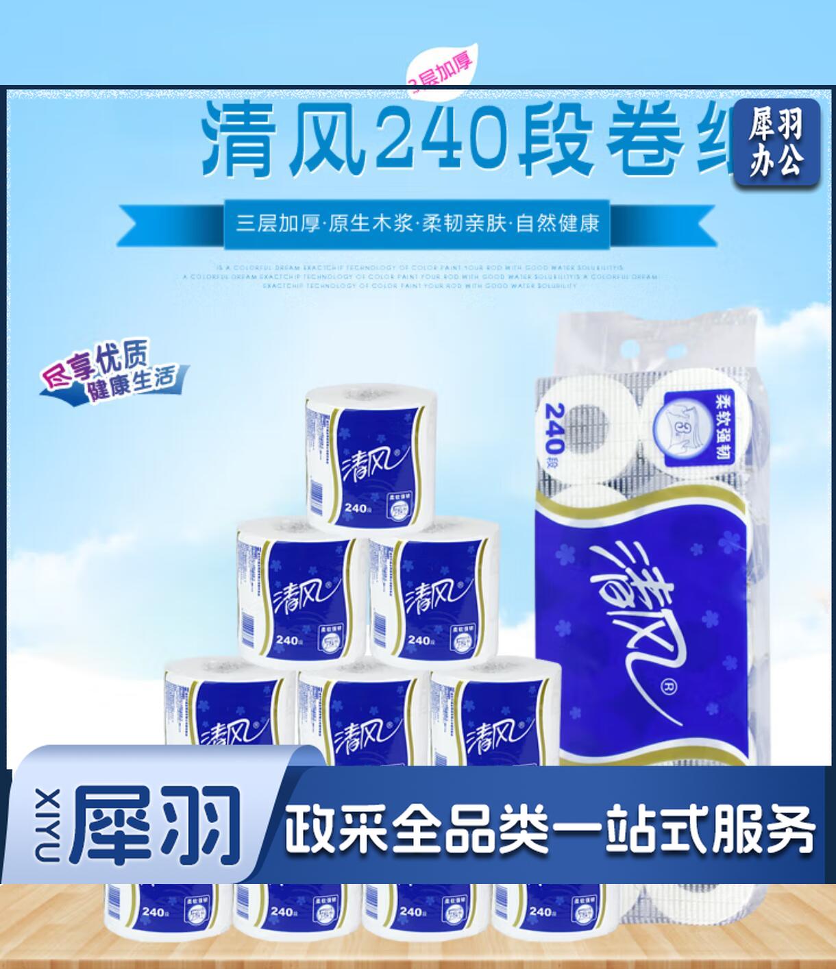 清风卷筒纸3层240段10卷有芯纸巾原木浆酒店宾馆用卷纸家用卫生纸手厕纸B22AT3BN