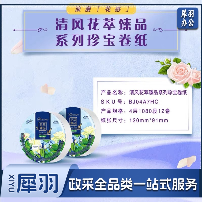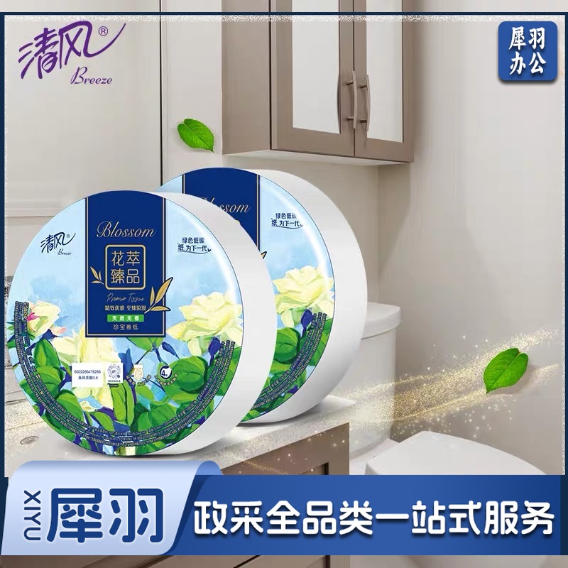清风花臻品系列珍宝卷纸大盘纸酒店商场卫生间厕所用纸