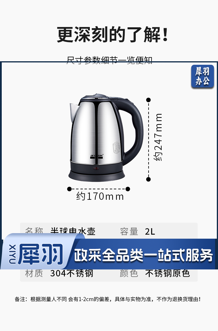 半球(Peskoe)电水壶2L 食品级304不锈钢电热水壶烧水壶