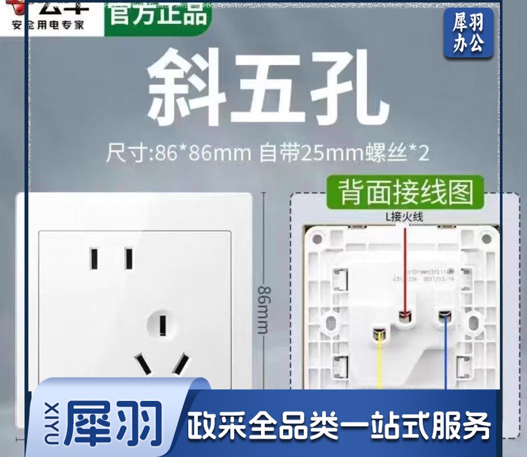 公牛(BULL) 开关插座 10A斜五孔插座 86型面板 白色 暗装