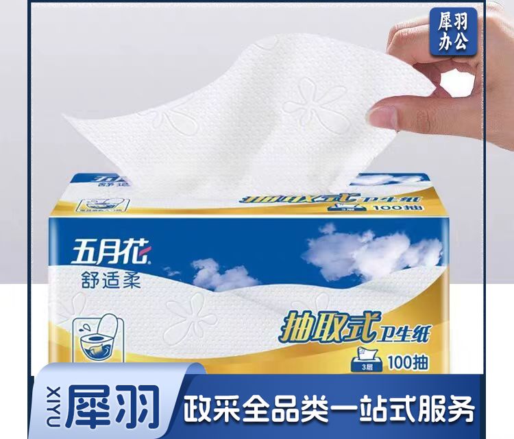五月花抽取式卫生纸 厕纸抽纸压花加厚 100抽/包 6包装