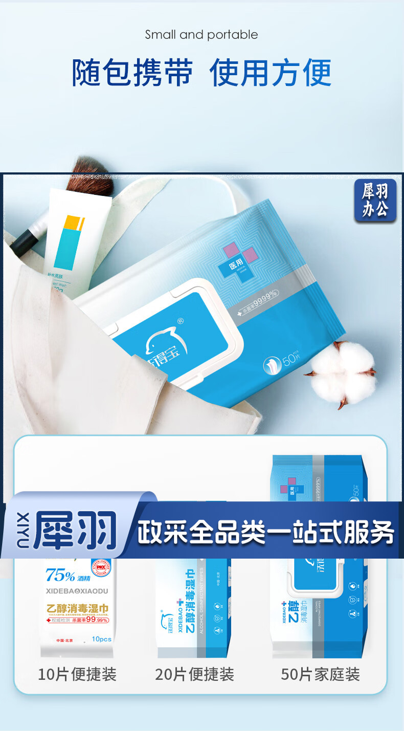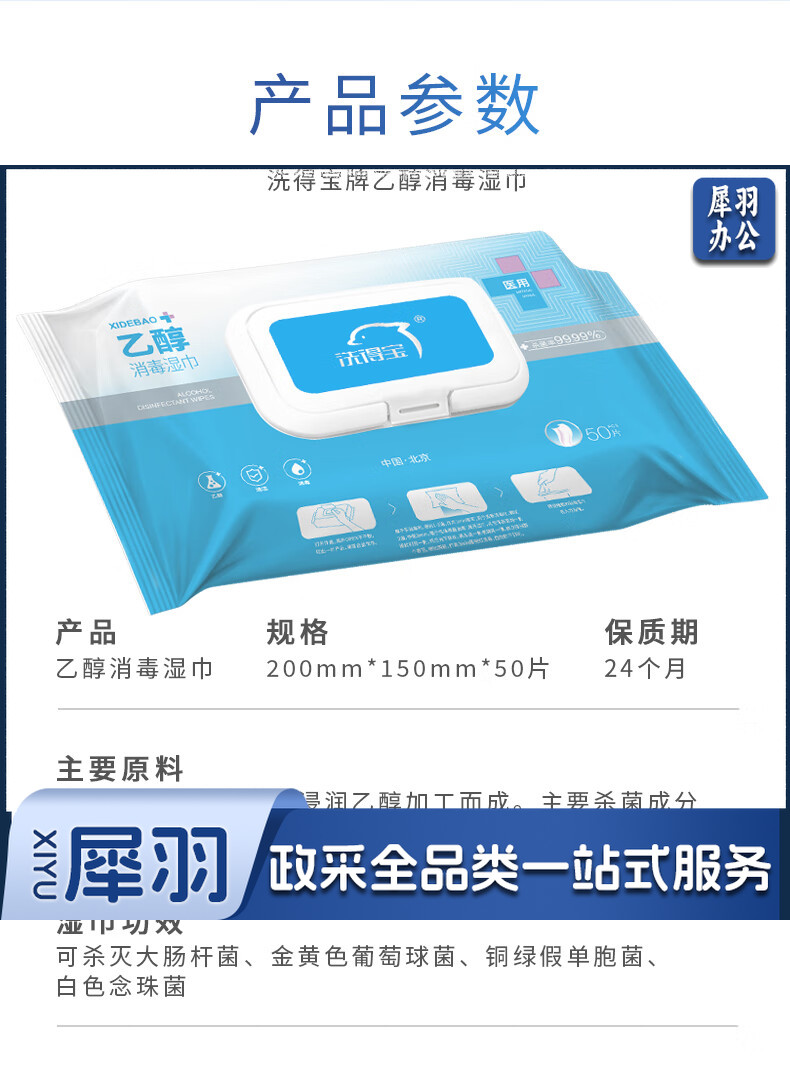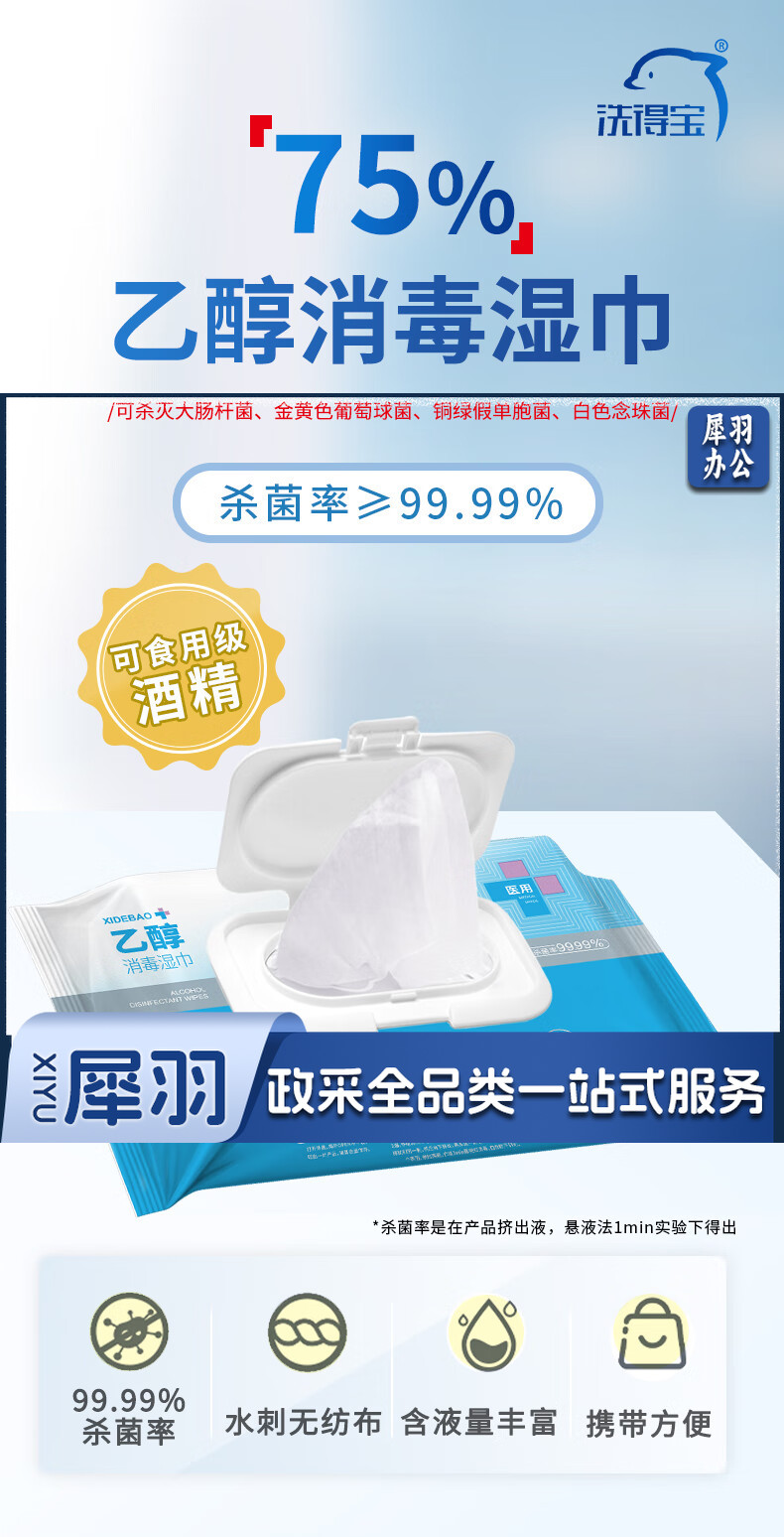 洗得宝 75%酒精消毒湿巾 乙醇湿巾 杀菌大包装50片装