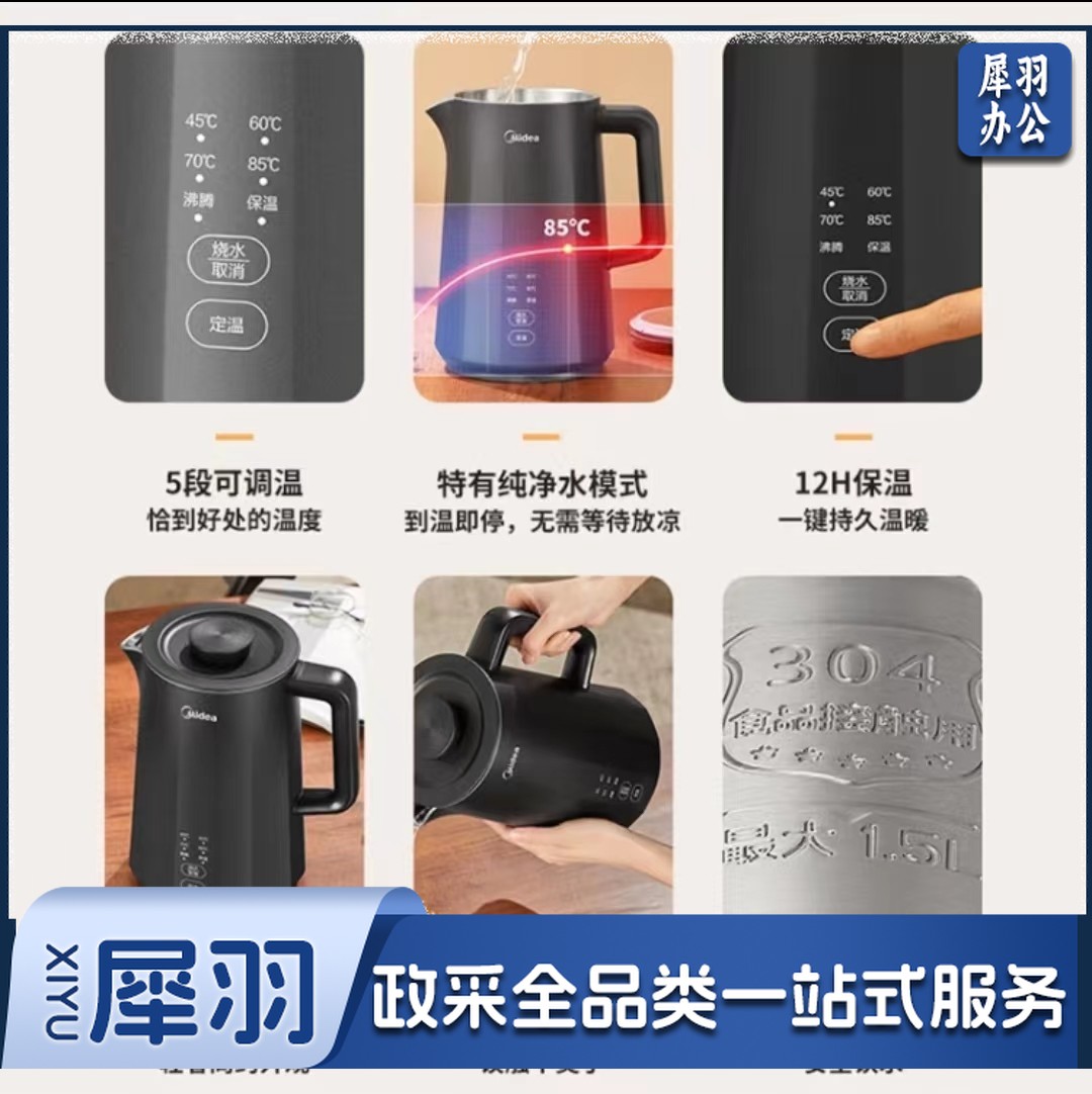 美的(Midea)电热水壶烧水壶双层防烫一体无缝拔盖设计净甜家用办公大容量多段控温恒温开水壶MK-SHE1530