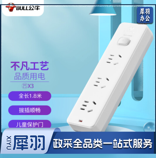 公牛(BULL) GN-212 新国标插座 3位总控全长1.8米