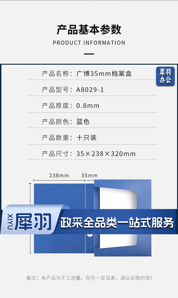 广博(GuangBo)35mm粘扣A4文件收纳盒档案盒资料盒 蓝色A8029