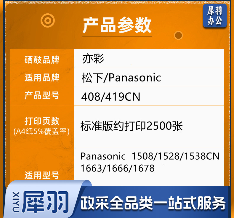 亦彩 激光打印机硒鼓 松下408/419CN适用于 Panasonic1508/1528/1538 等激光打印机
