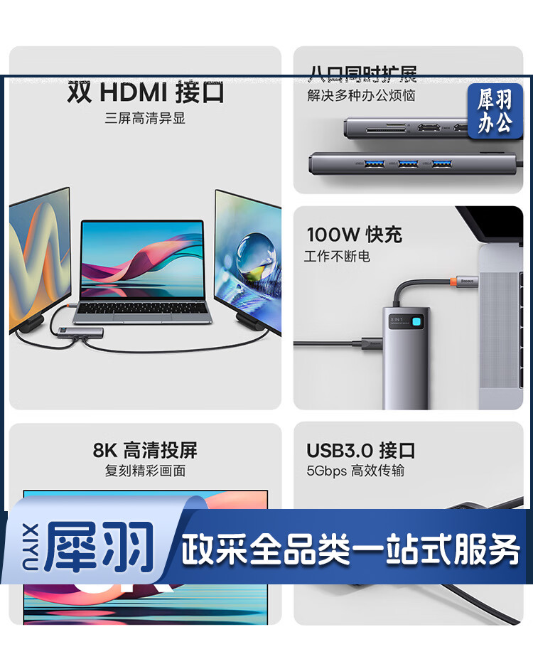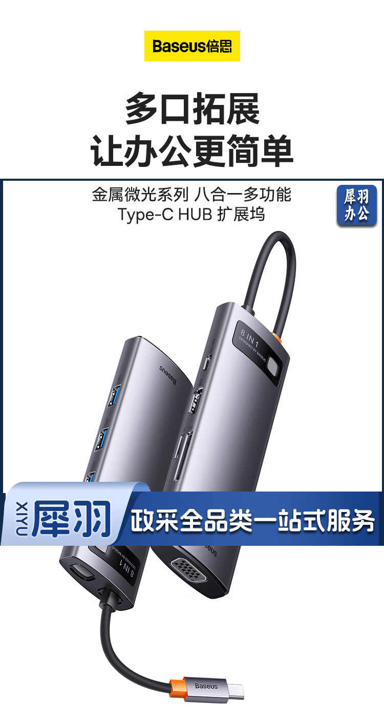 倍思 Type-C扩展坞 USB-C转HDMI线11合1拓展坞0.2米 转换器网线转接头分线器适用于电脑iPad笔记本平板手机