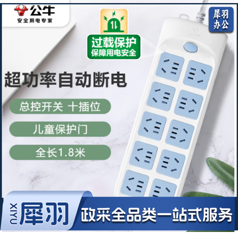公牛(BULL)超功率保护新国标插座插线板排插接线板 10位总控全长1.8米 GN-605