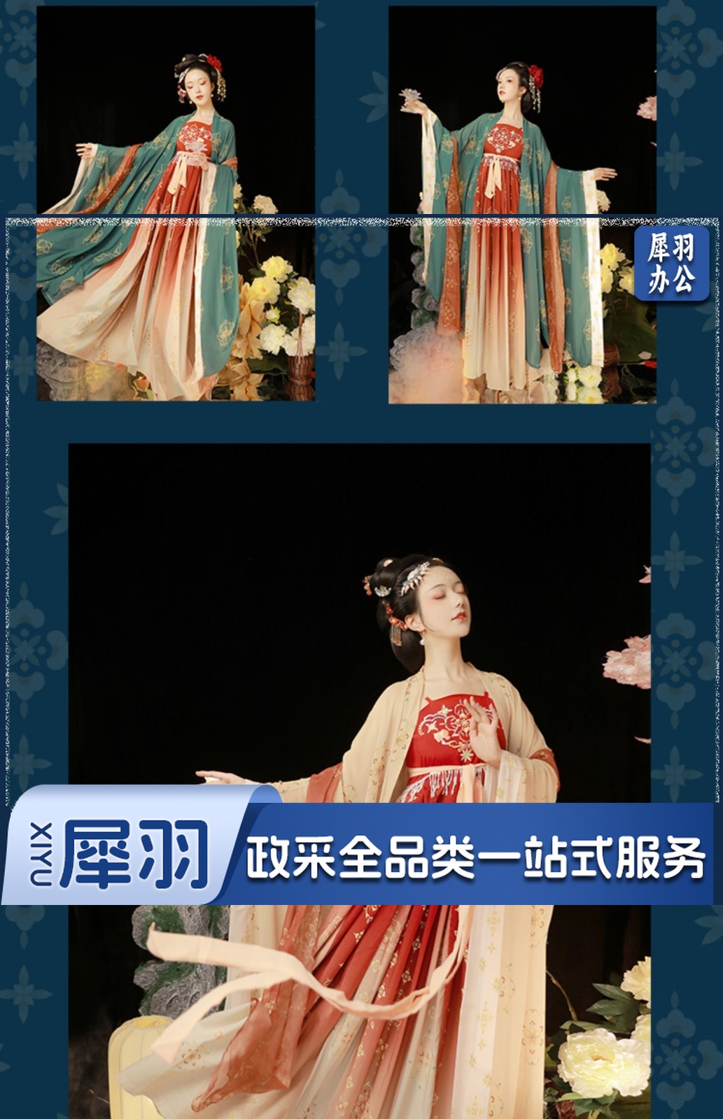 汉服民族服装教学用品大码汉服女夏季唐制诃子裙超仙显瘦飘逸学生套装中国风朱雀(绿色大袖衫+柯子裙)
