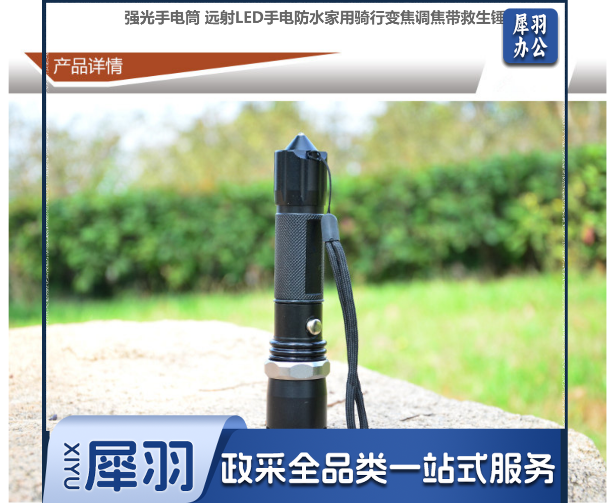 强光手电筒 远射LED手电防水家用骑行变焦调焦带救生锤电筒