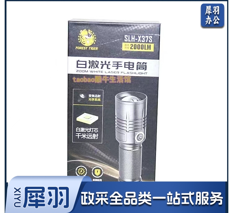 森林虎X37S LED手电筒伸缩变焦可充电式远射便携 黑色