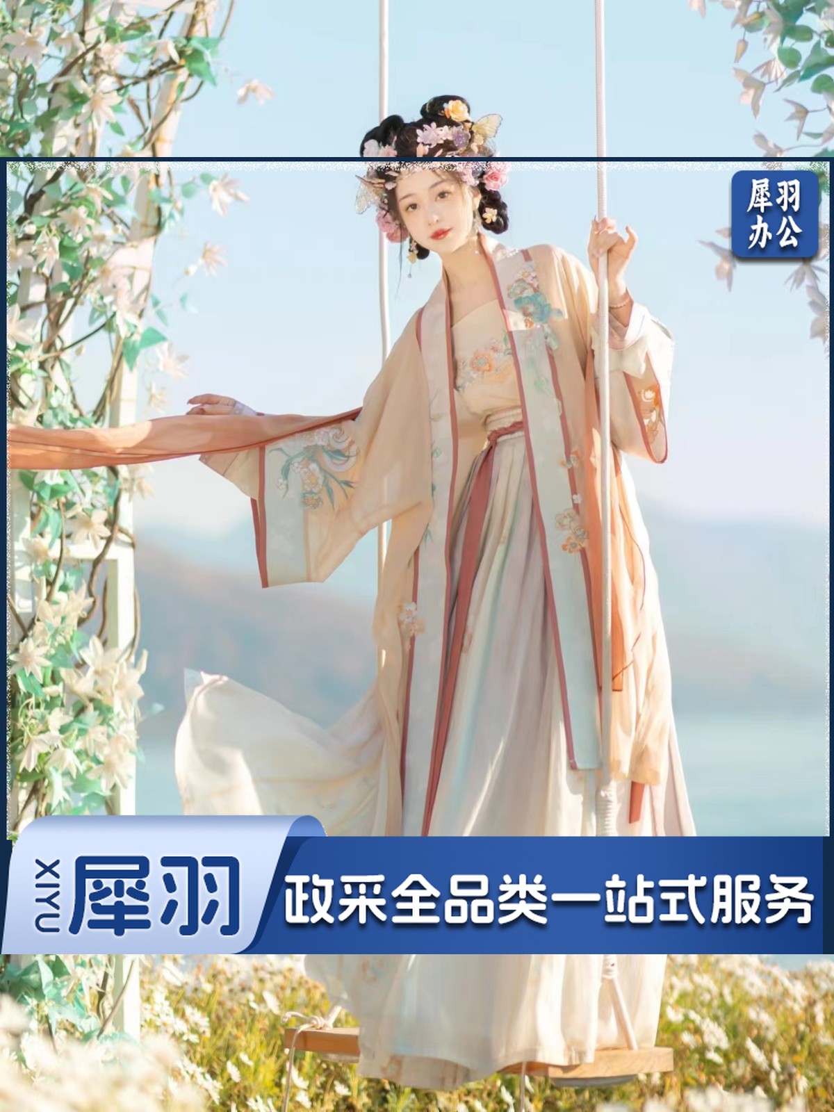 汉服民族服装教学用品 汉服女日常仙气刺绣齐腰春夏新款 杏色五件套