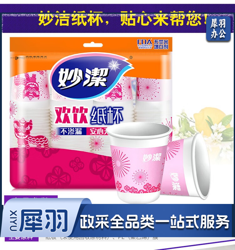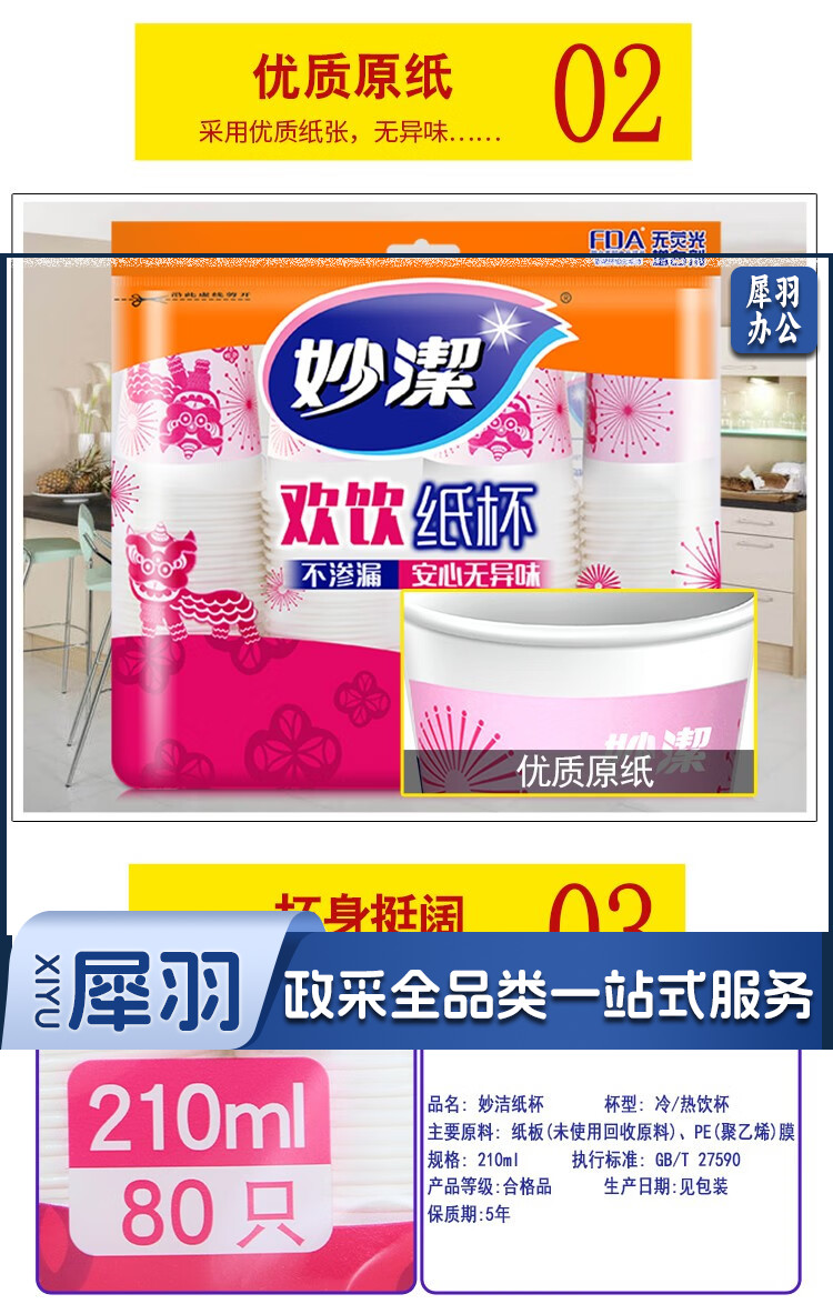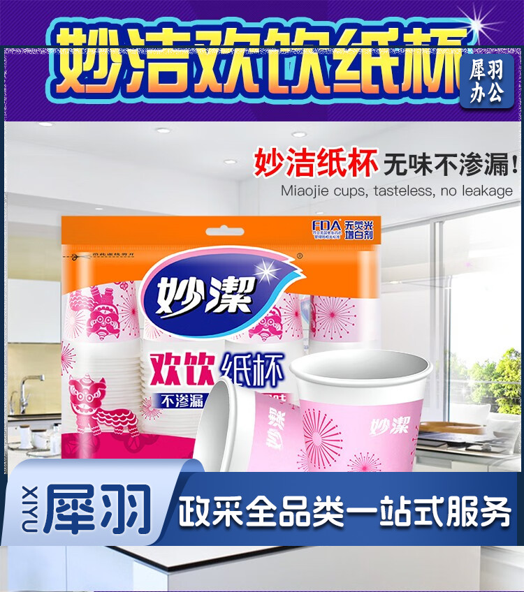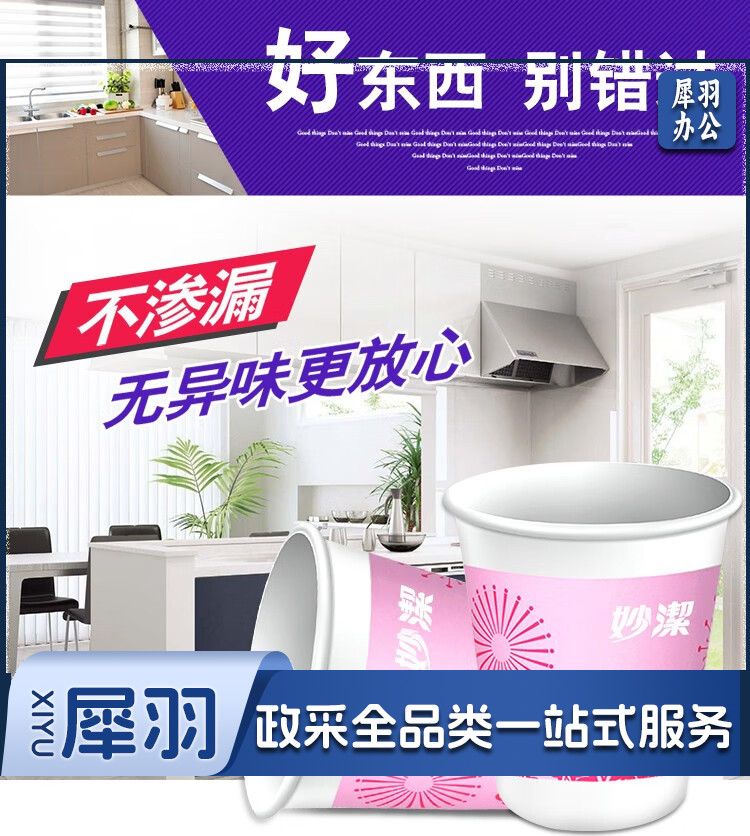 妙洁纸杯一次性杯子 100只装228ml加厚型*10包