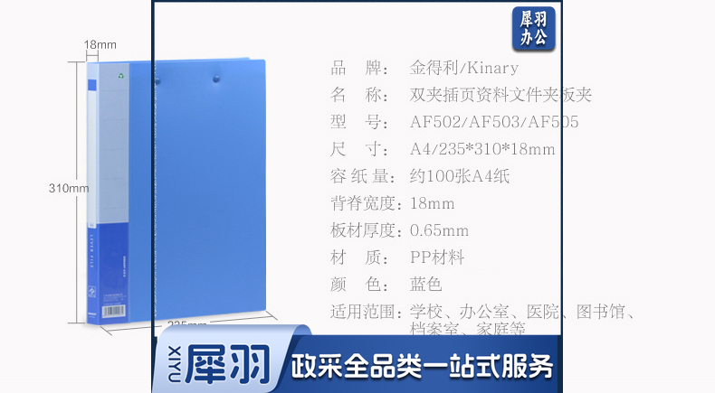 金得利 AF505 双强力夹 A4 双强力夹 蓝色