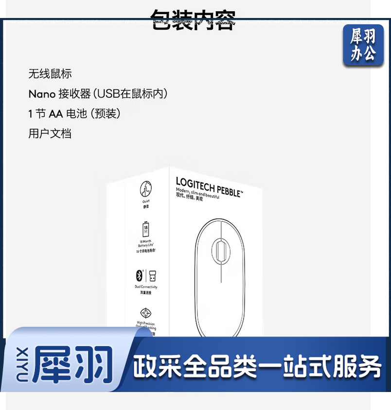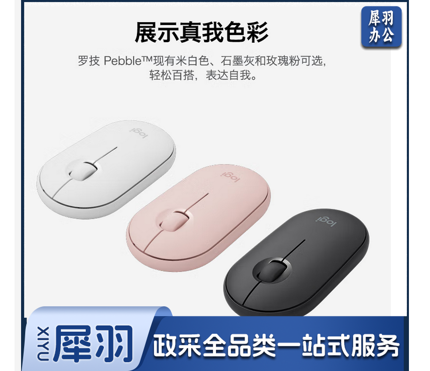 罗技 Pebble鹅卵石 无线鼠标 石墨灰,白色,粉色 默认石墨灰