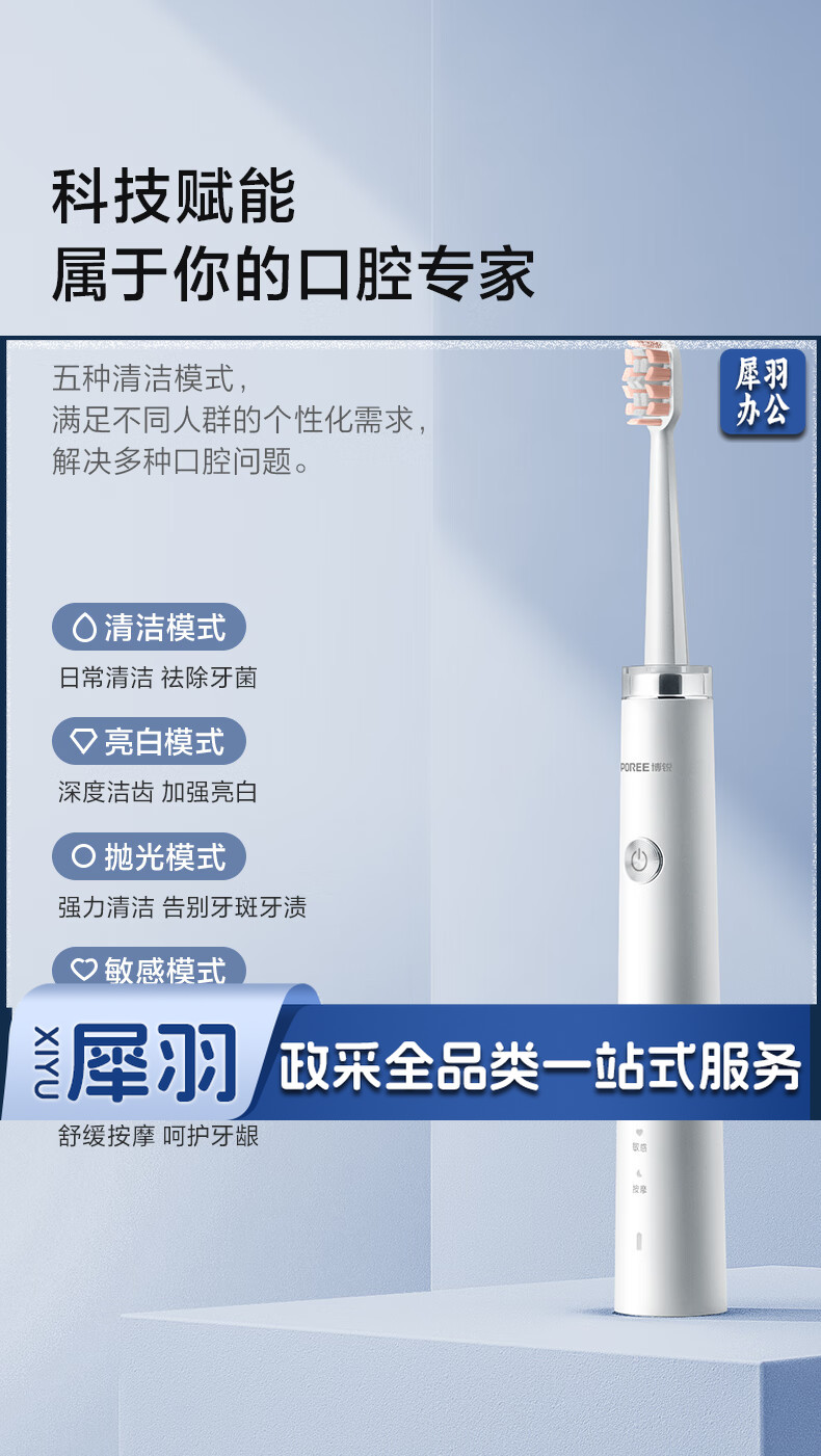 电动牙刷智能牙刷电动情侣成人学生家用声波震动牙刷5种净齿模式礼物情侣款PT1701皓月白