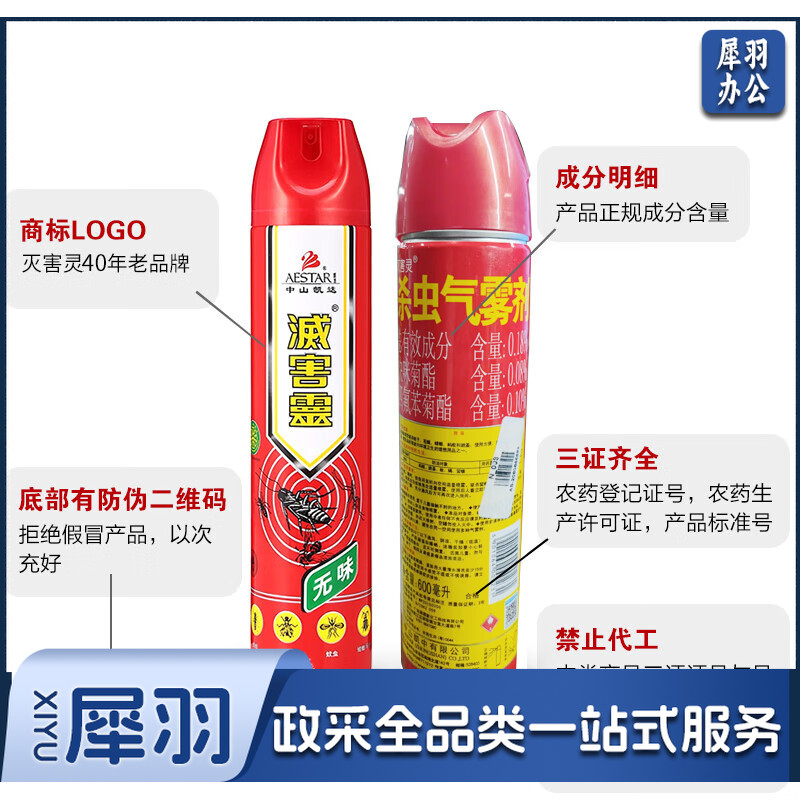 灭害灵无味杀虫剂水 气雾剂 灭蚊无香蟑螂药驱苍蝇蜈蚣百虫灵药剂600ml A1009