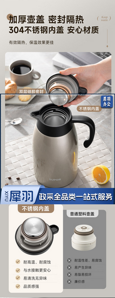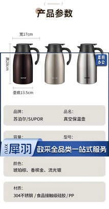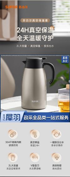 苏泊尔(SUPOR)保温壶大容量家用水壶304不锈钢暖水壶热水瓶按压式热水壶开水瓶 流光银 2L