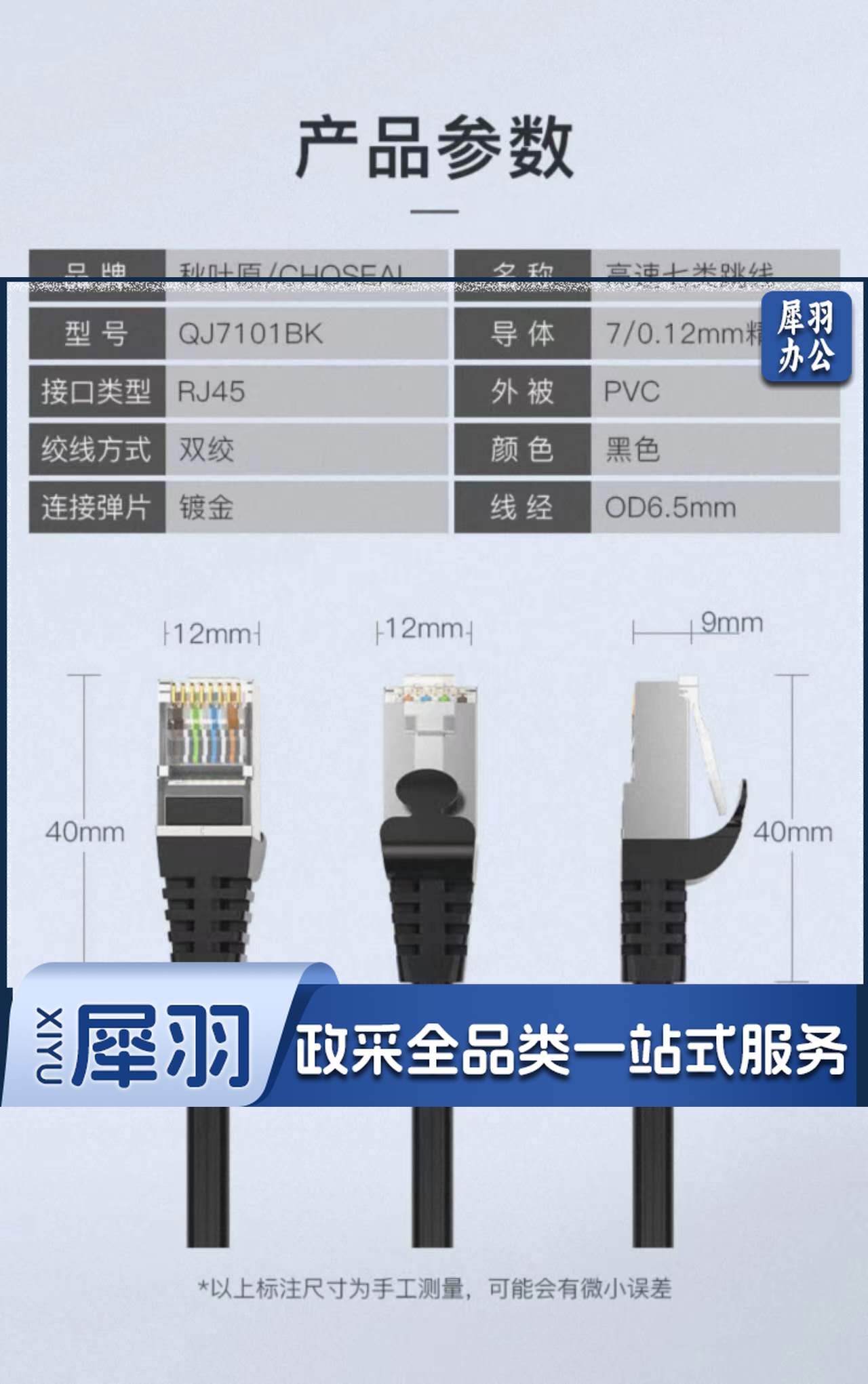 秋叶原(CHOSEAL)1米七类网线 Cat7类纯铜双屏蔽万兆网络连接线 7类宽带电脑游戏监控网络跳线1米 QJ7101BKT1