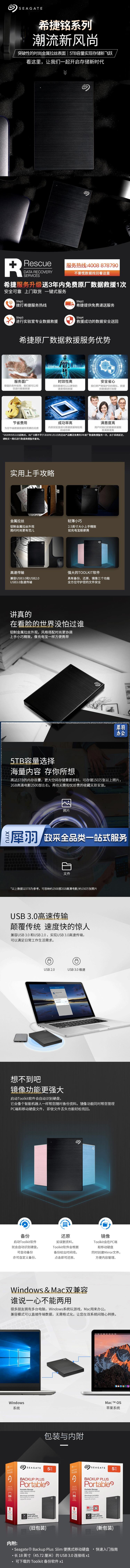 希捷(Seagate) 移动硬盘 5TB/5T USB3.0 铭 2.5英寸金属外壳 兼容Mac