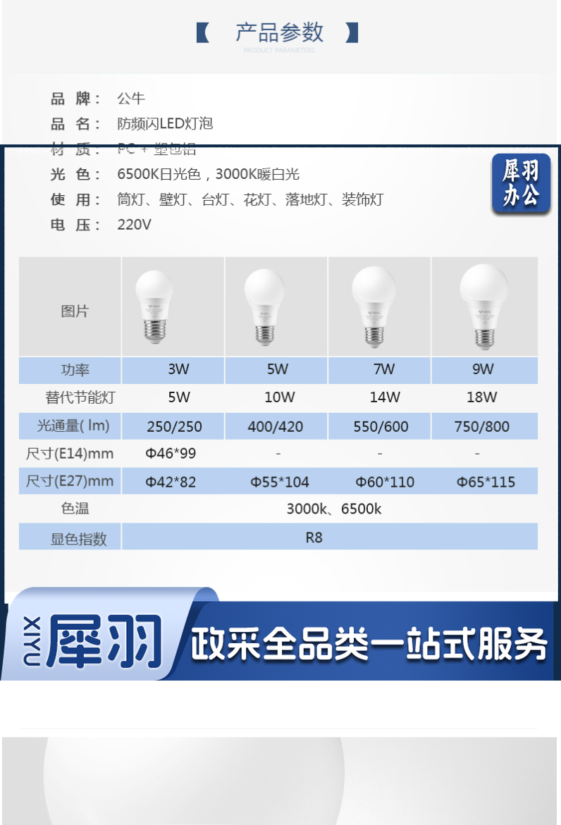 公牛(BULL)LED节能护眼灯泡 E27螺口 12W 白光