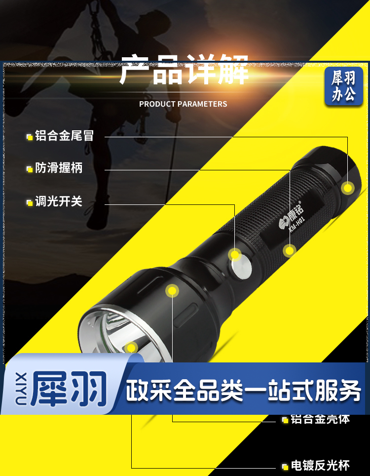 康铭 强光手电筒远射手电户外照明露营灯应急灯KM-H01