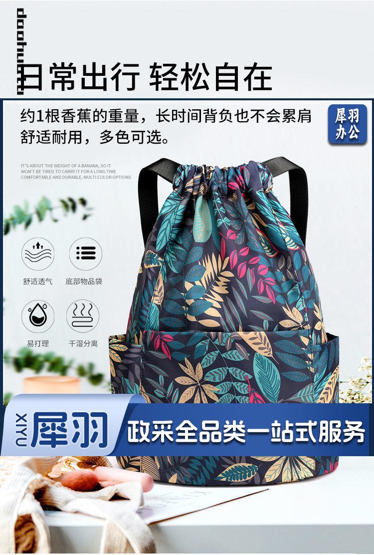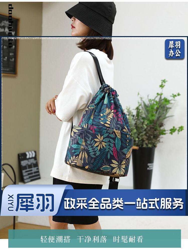 大容量防水背包女抽绳束口袋花布包中老年双肩包买菜购物袋方便袋