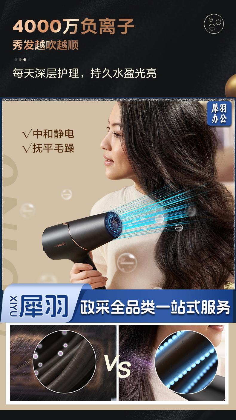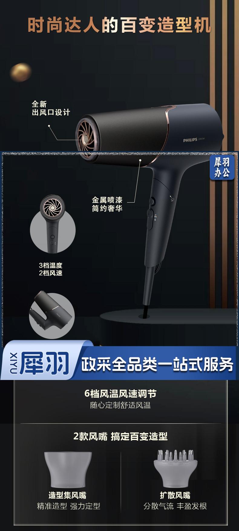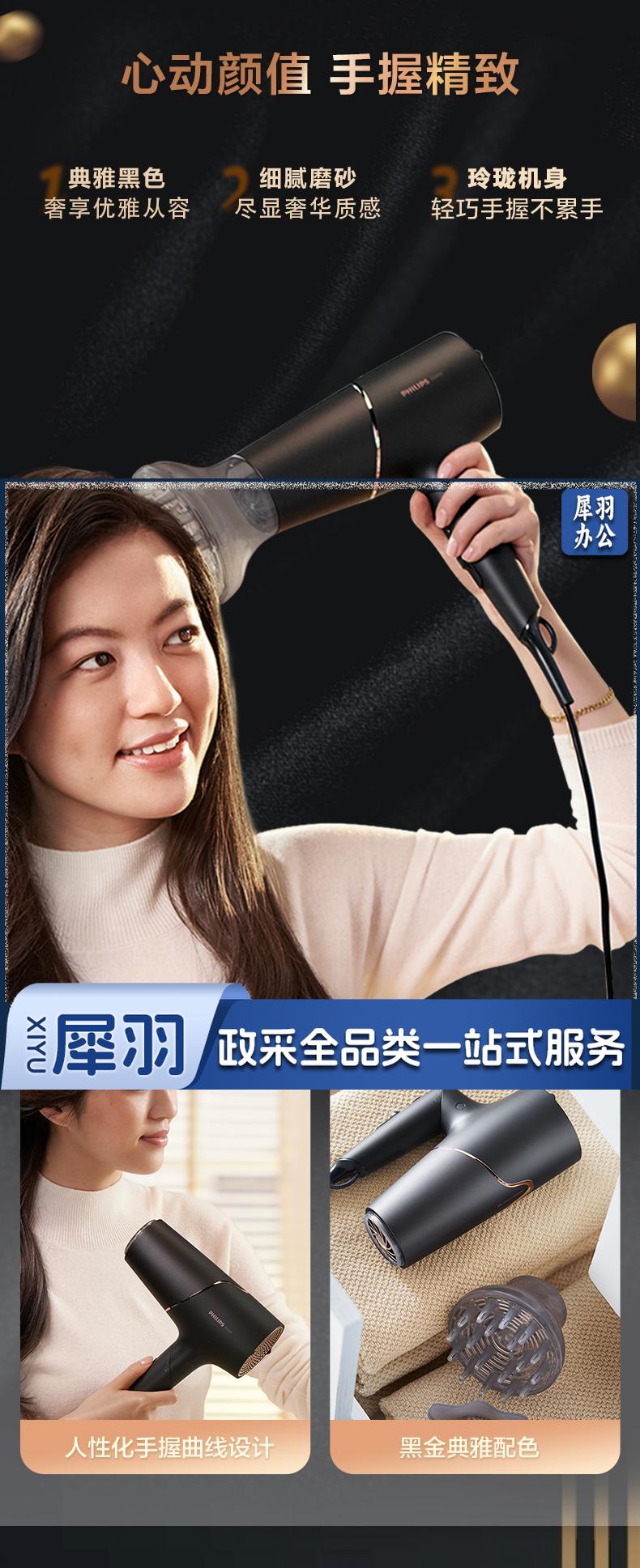 飞利浦(PHILIPS)吹风机电吹风家用大功率 负离子吹风筒恒温护发 速干BHD538/25