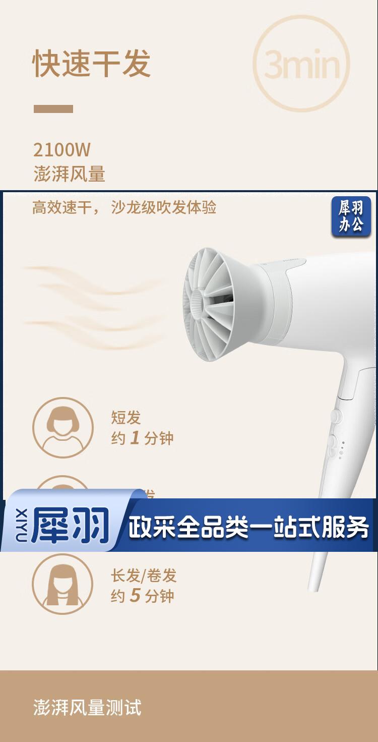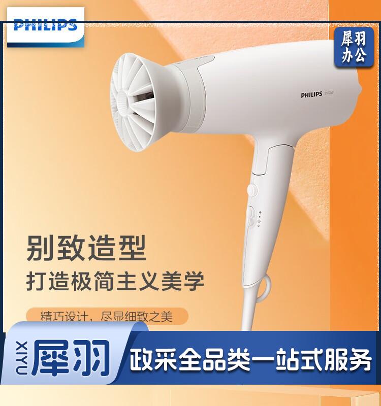 飞利浦(PHILIPS) 电吹风机家用吹风筒 恒温速干家用大功率吹风筒送女友男友礼物 可折叠快速干发BHD308/05黑色