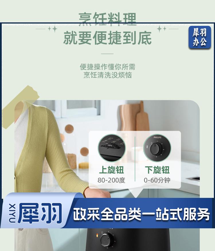 飞利浦(PHILIPS)空气炸锅 家用无油多功能电炸锅 海星底盘减少90%油脂 一机多用 精致小容量1-2人HD9100/80