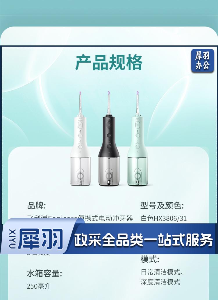 飞利浦(PHILIPS)Sonicare 便携式冲牙器 全自动水牙线 成人洗牙器 家用牙齿美牙舱 HX3806/31 白色