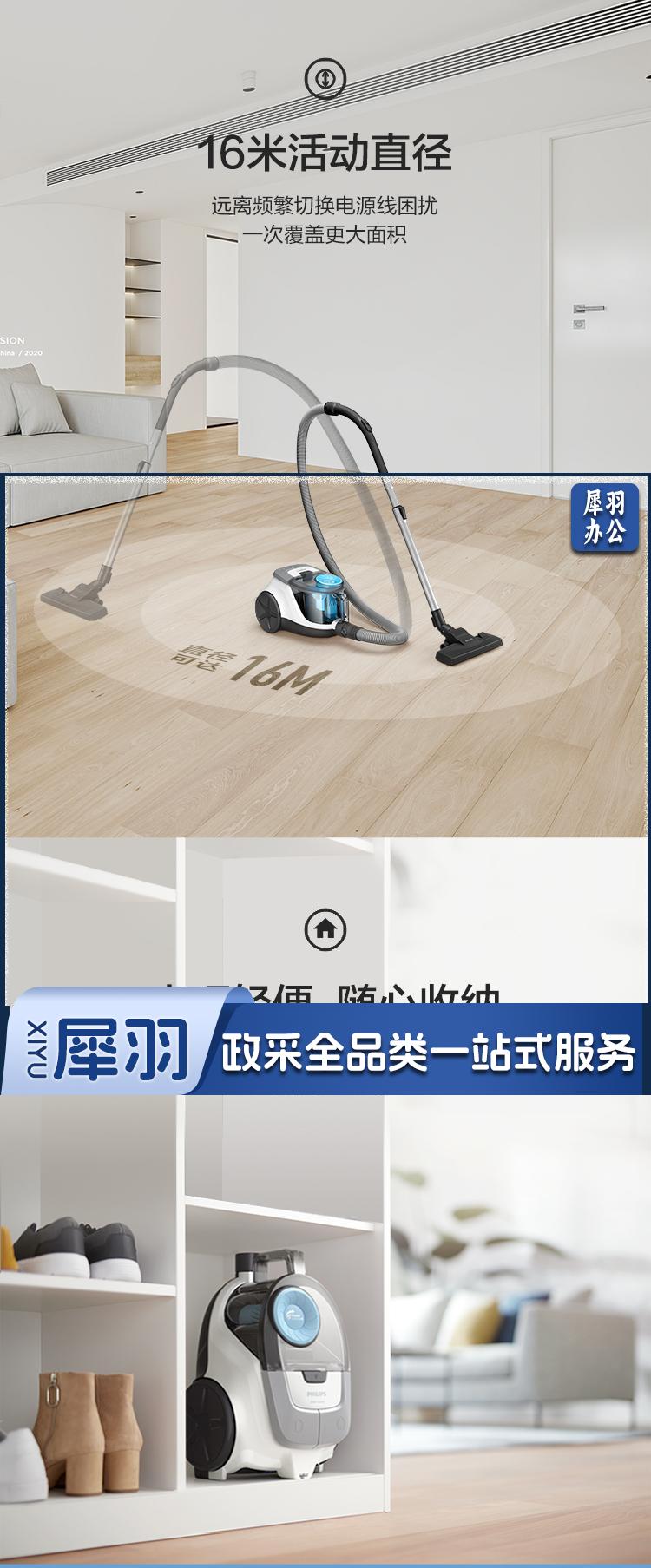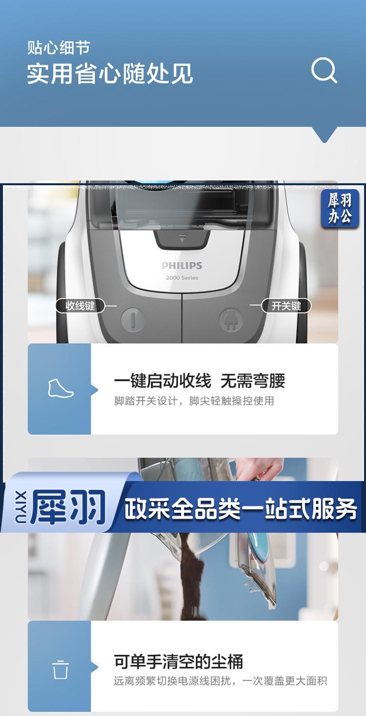 PHILIPS飞利浦 XB2023 卧式吸尘器 家用清洁机 强劲大功率大吸力 吸灰吸尘智能除尘