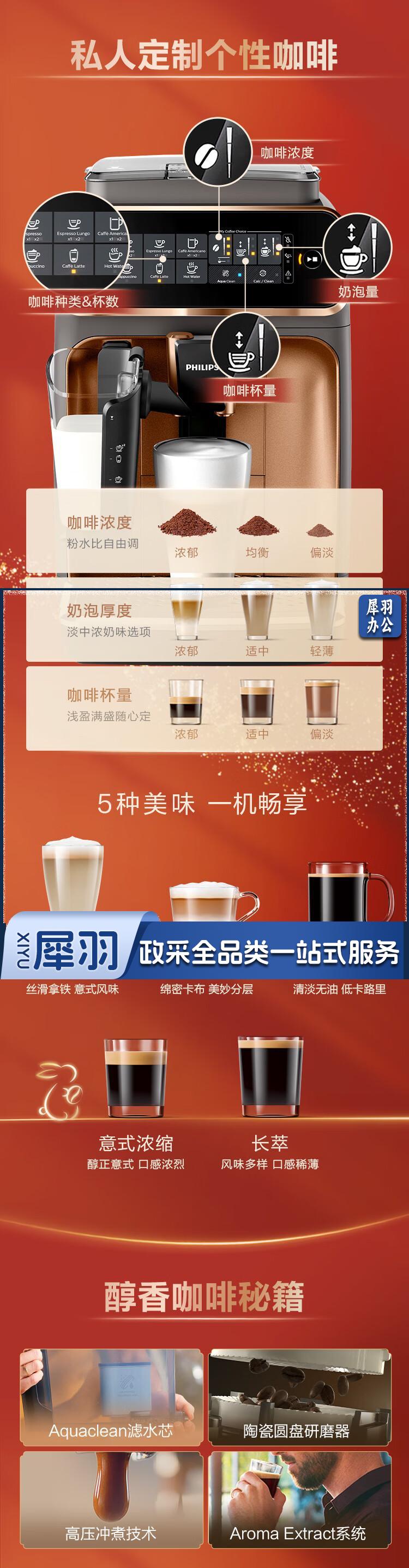飞利浦(PHILIPS)咖啡机兔年限量款家用/办公室意式高压浓缩萃取全自动研磨一体机自动清洗电动磨豆奶泡机EP3146/62