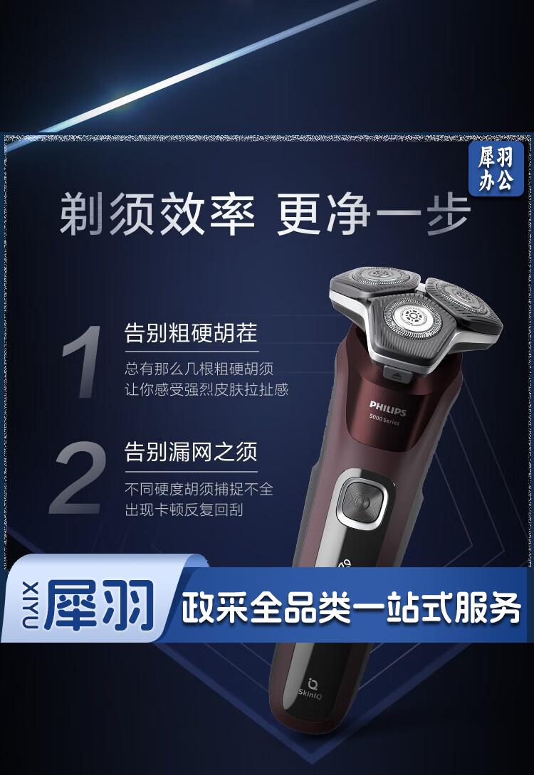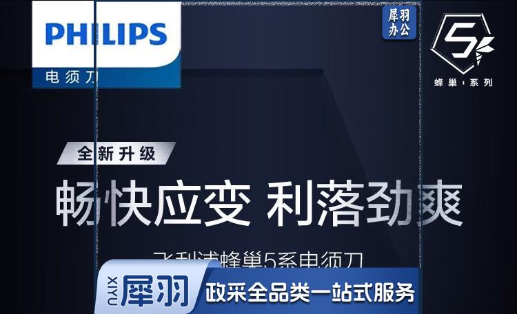 飞利浦男士剃须刀电动刮胡刀1小时快充胡须刀送男友送父亲礼物【新年礼品】 蜂巢5系丨升级USB充电丨烟灰蓝