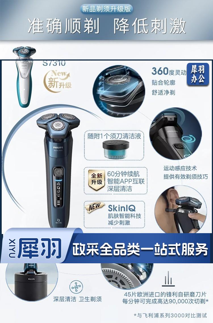 飞利浦(PHILIPS) 电动剃须刀全新7系蜂巢系列肌能感应智能刮胡刀送男友礼物 【蓝蜂巢S7837/50】肌能感应 无线清洁