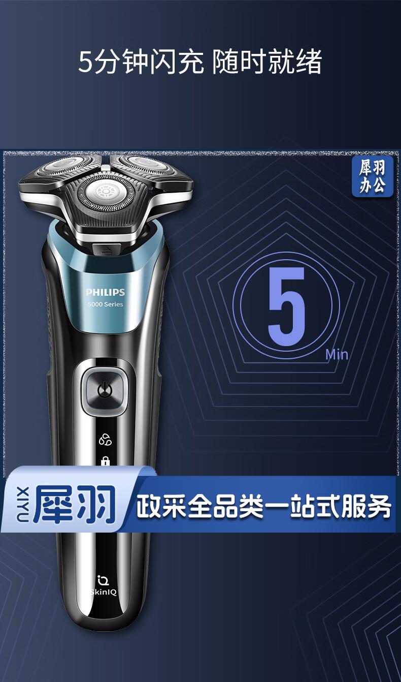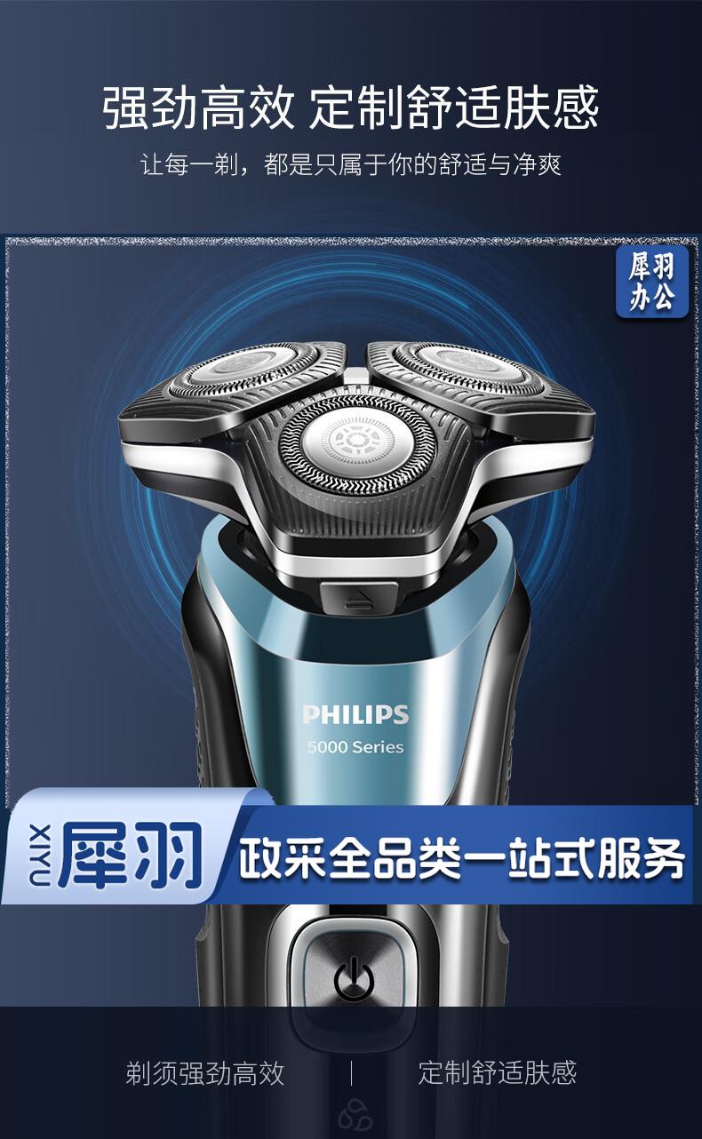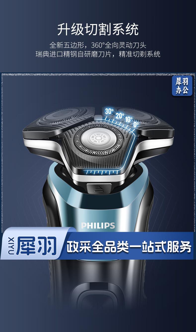 PHILIPS飞利浦剃须刀 电动刮胡刀电须刨三刀头胡须刀刮胡子剃胡刀剔须刀5000系列升级款S5832男士礼物
