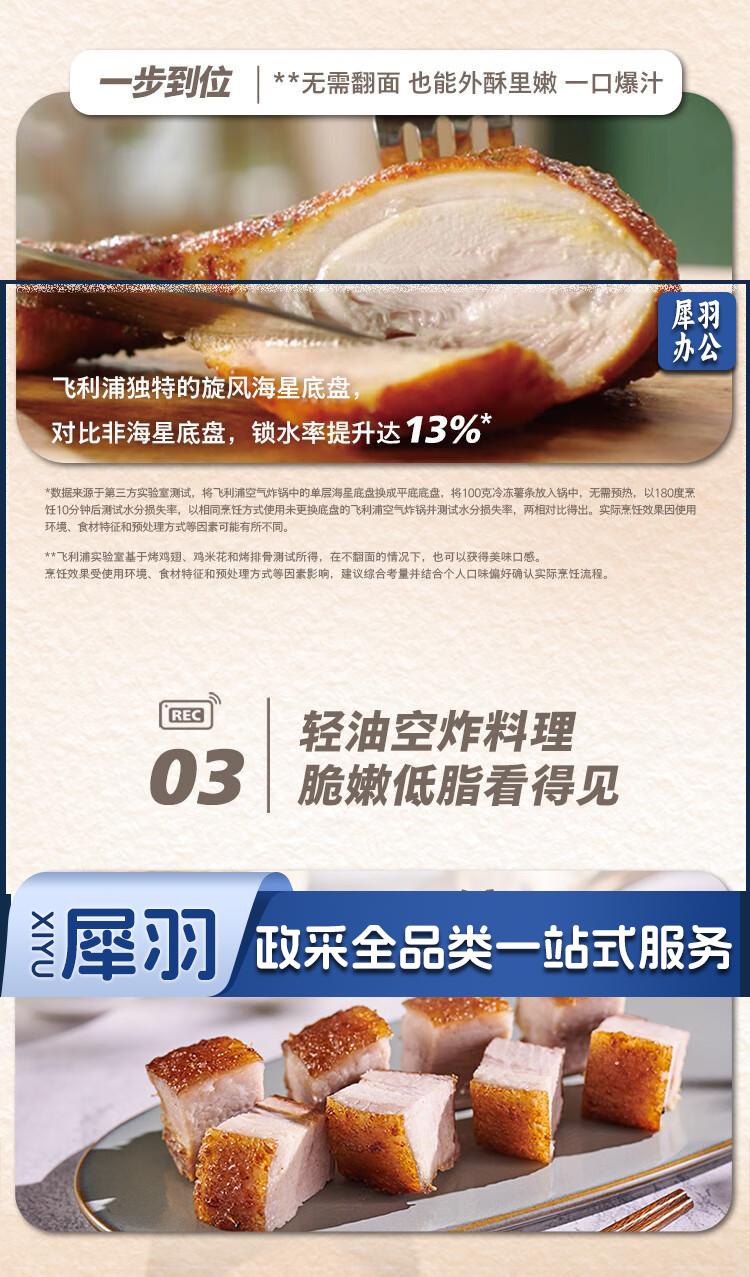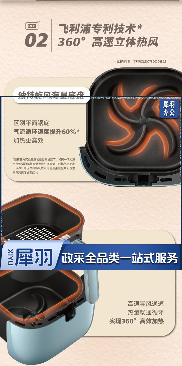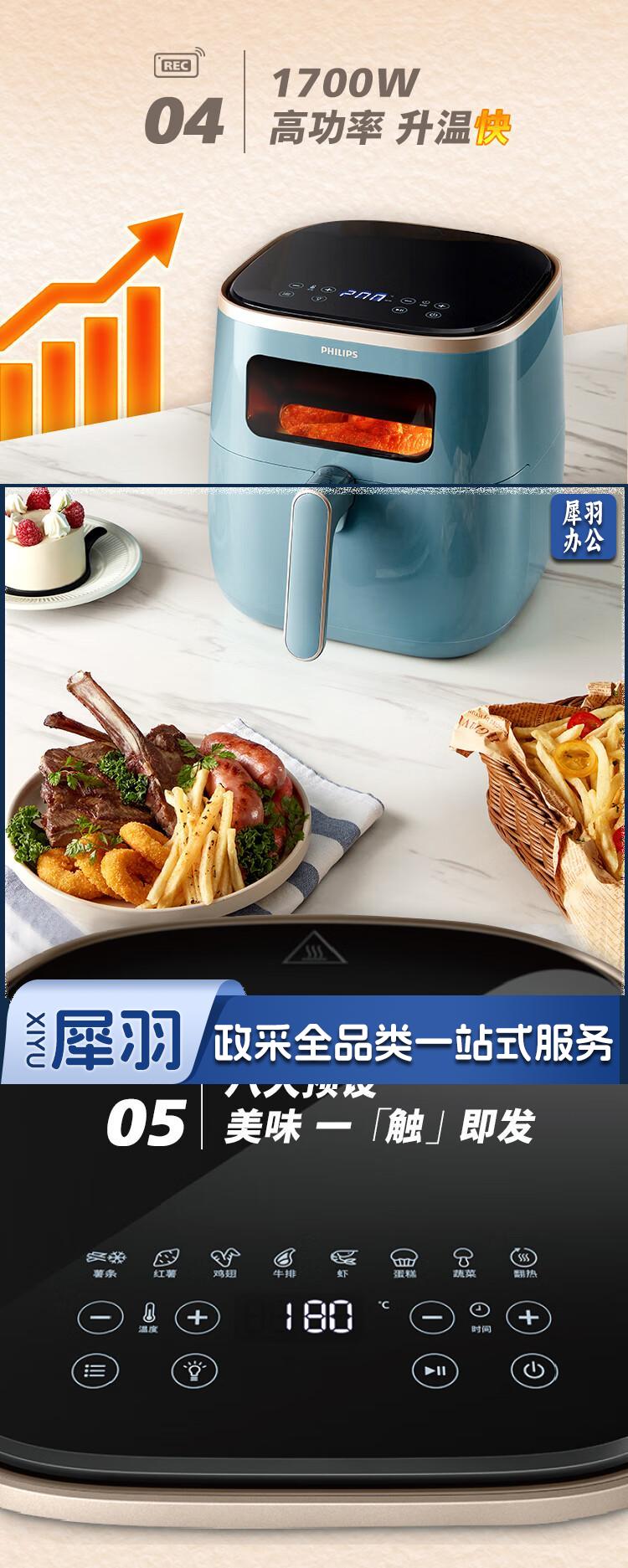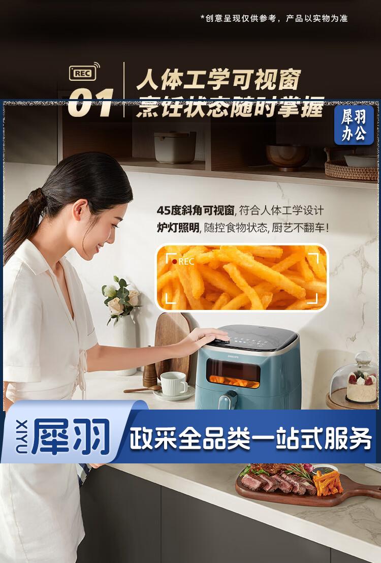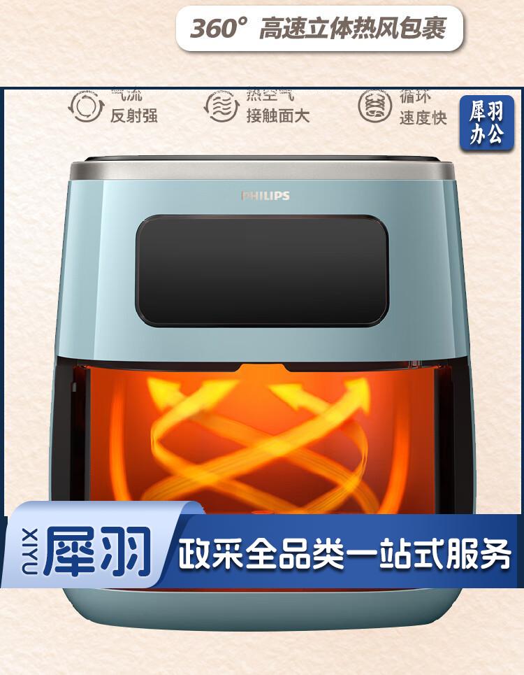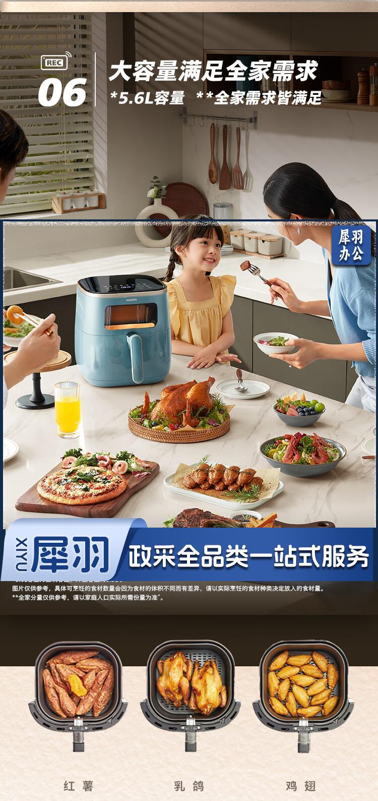 飞利浦(PHILIPS)海星空气炸锅 家用5.6L大容量多功能全自动【透明可视+不用翻面】双层锅体易清洗HD9257