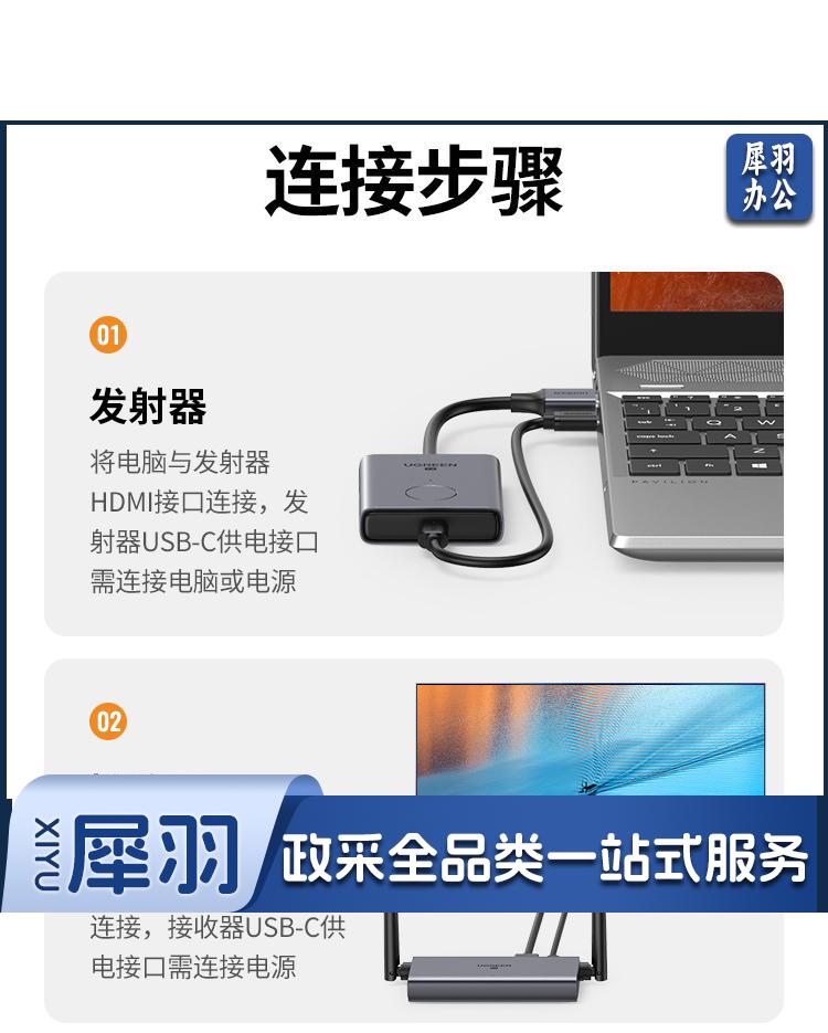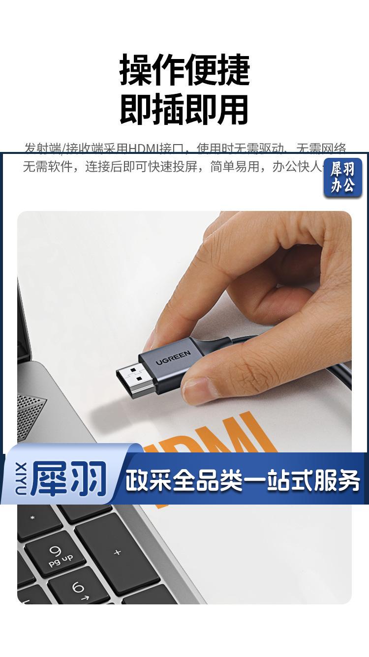 绿联 HDMI无线投屏器 适用电脑连接电视显示器投影仪 50米传输器 50633