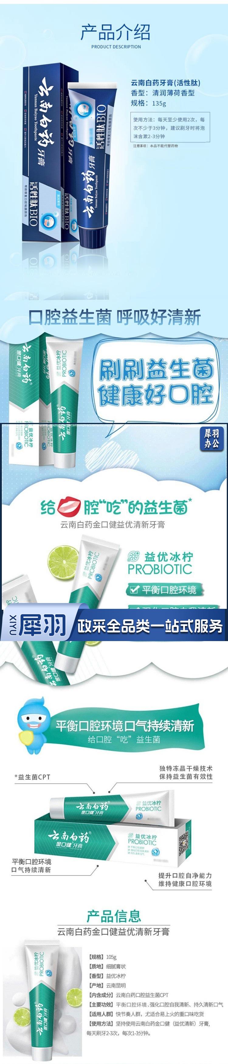 云南白药 牙膏套装 冰柠薄荷145g+留兰香型30g