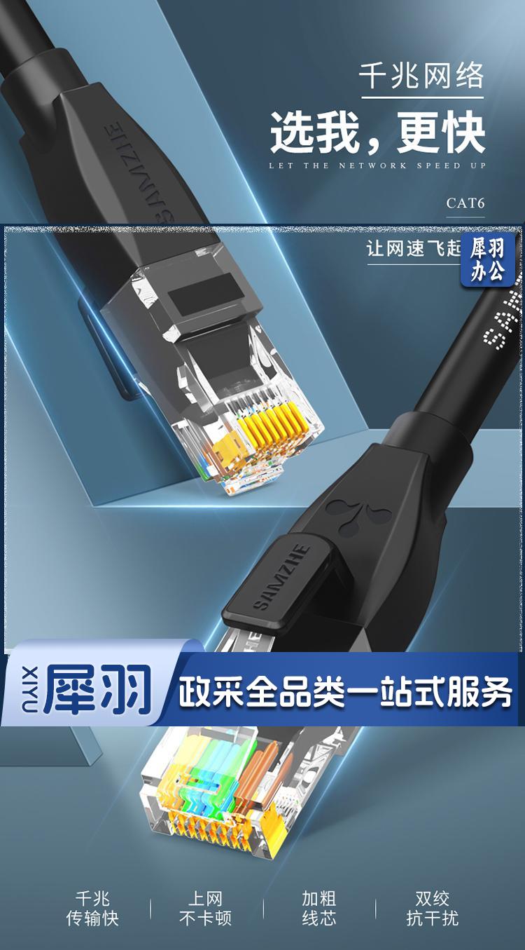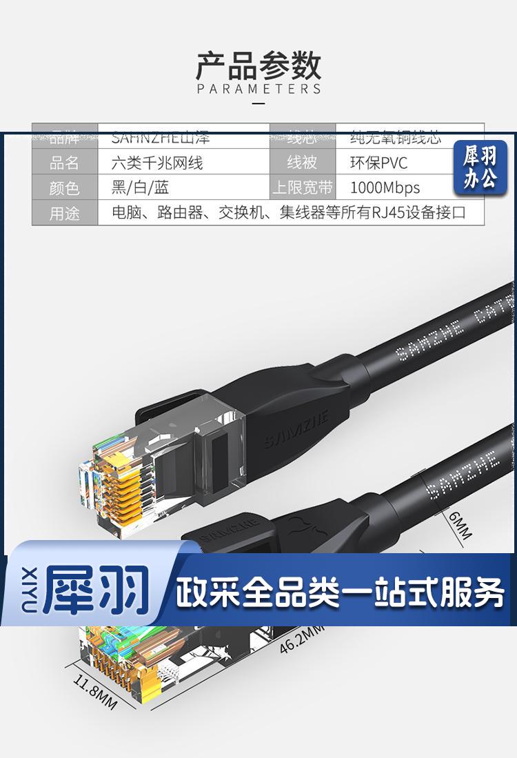 山泽(SAMZHE)六类网线 CAT6类千兆纯铜网线 成品电脑/家装/宽带网络连接跳线 黑色10米HCT100 匹配路由器