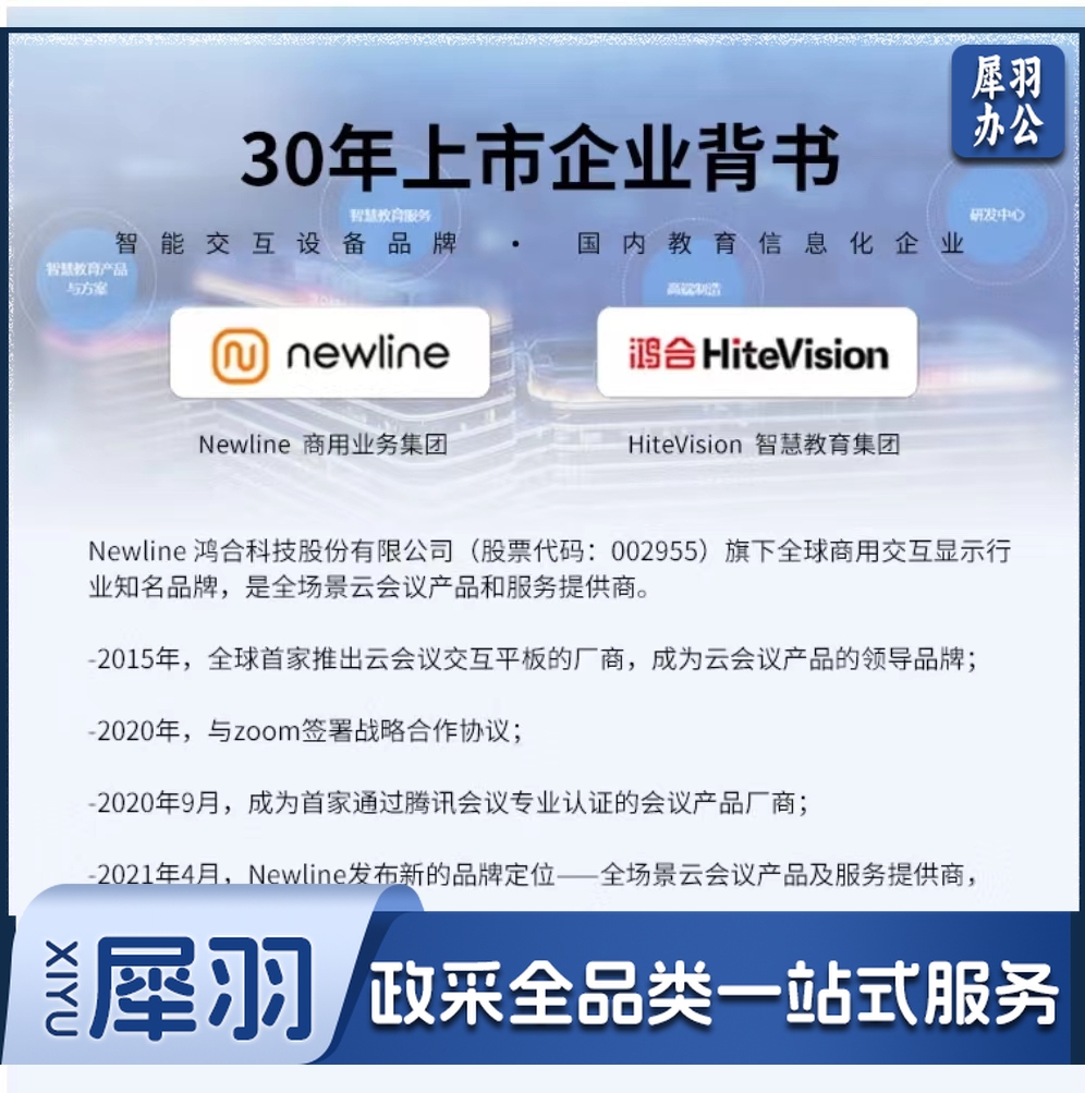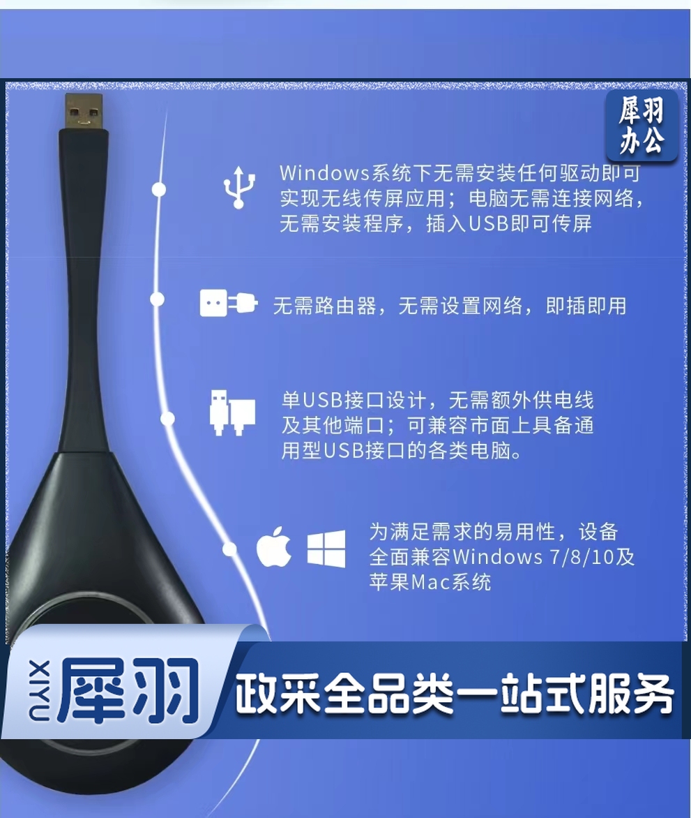鸿合newline 无线投屏传屏器小辫子 TB-W5F01适配55-86英寸 适用鸿合newline会议平板 教学一体机