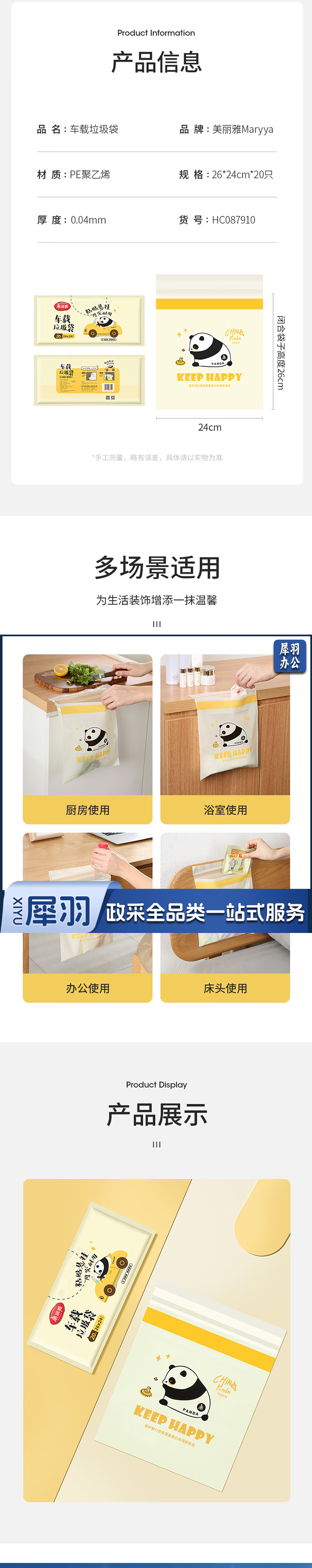 美丽雅车载垃圾袋粘贴式办公桌面清洁袋24*26cm共20只