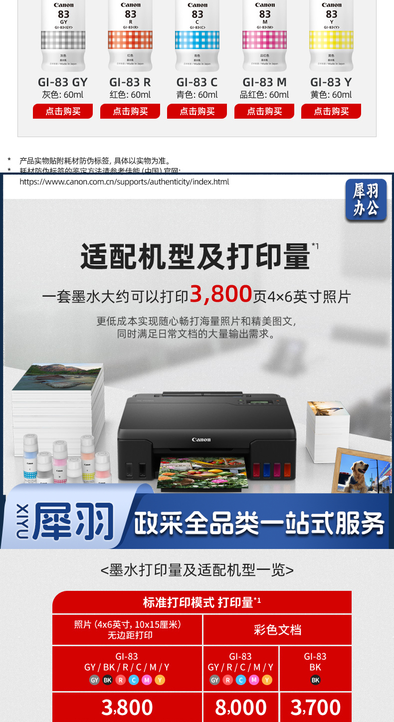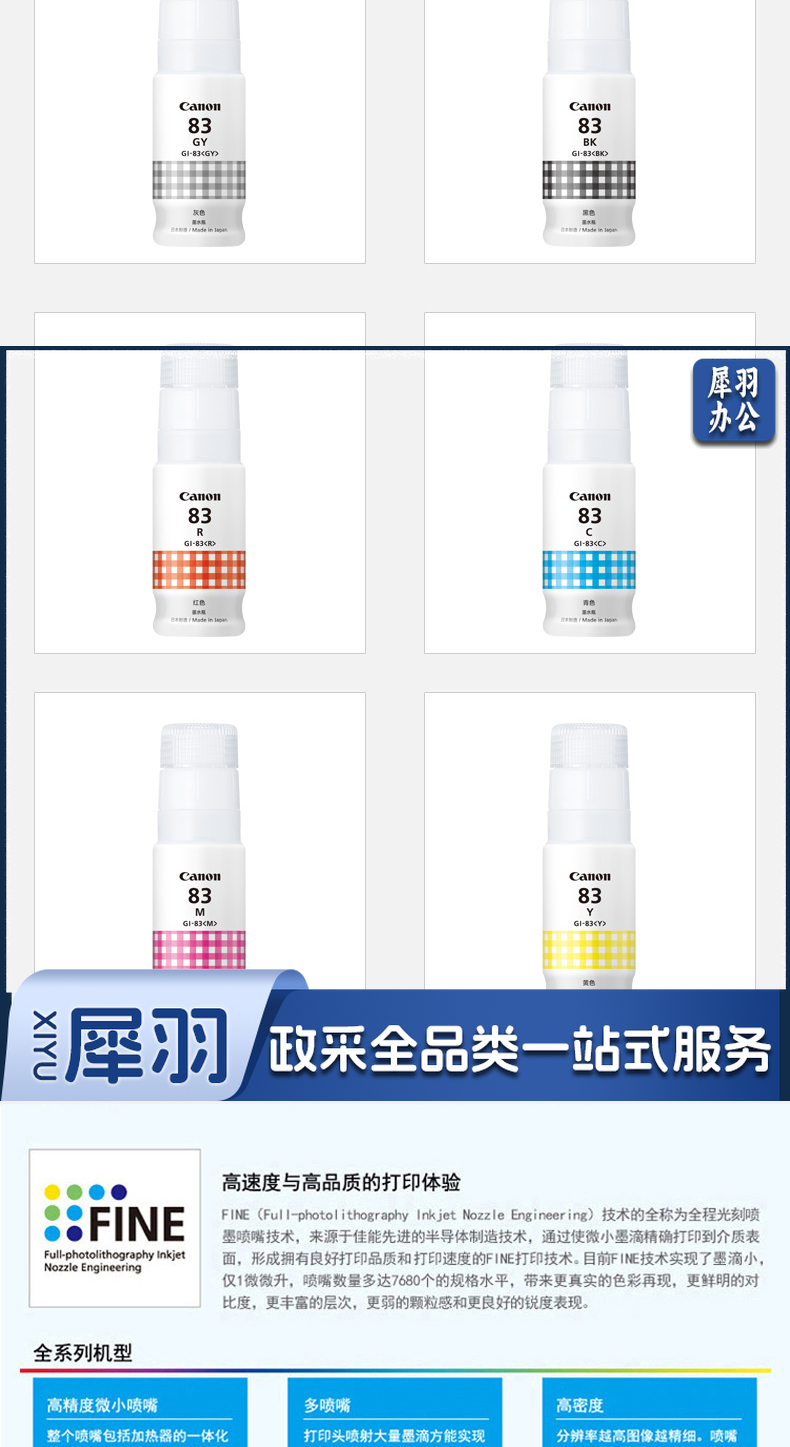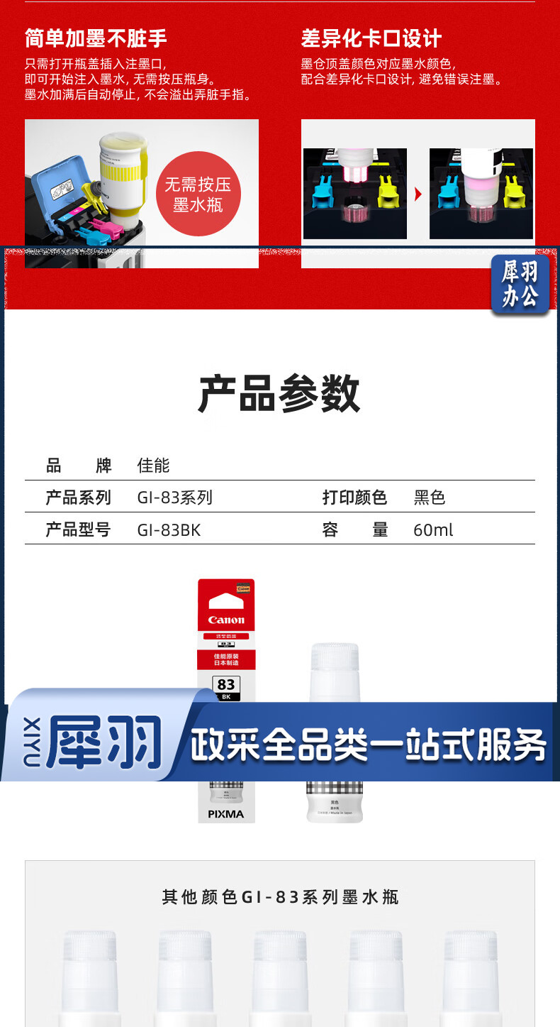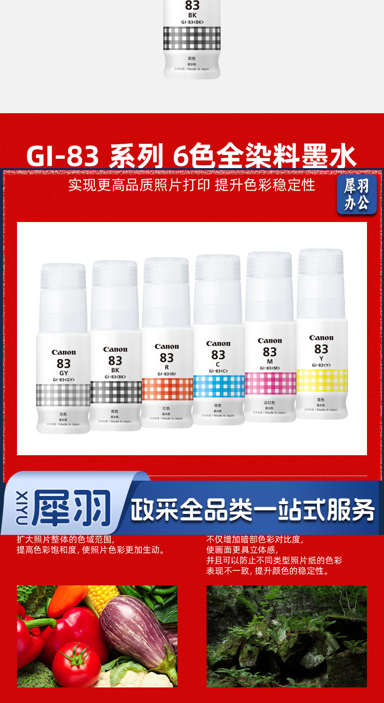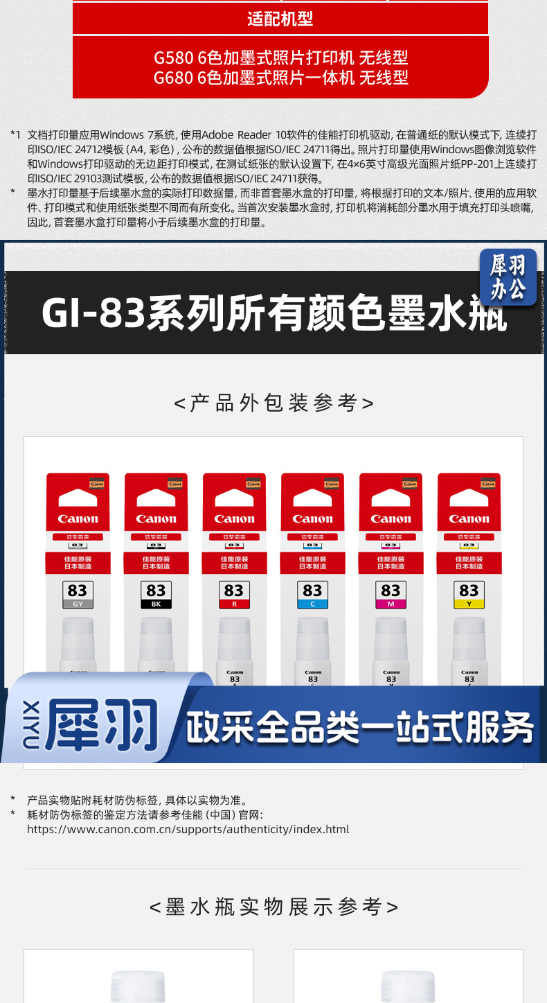 佳能(Canon)GI-83 BK 黑色墨水(适用于G580/G680)