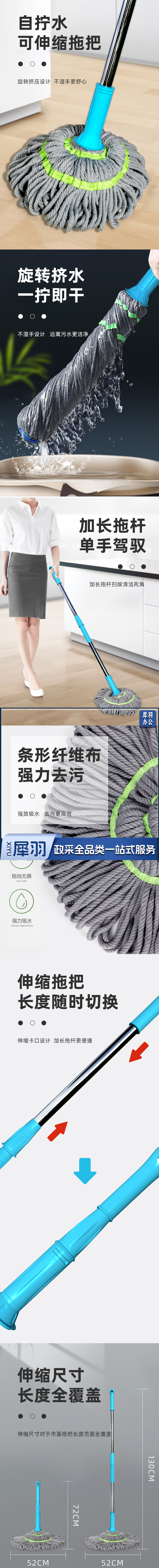 拧水拖把 必卡锁自拧水拖把 旋转拧水拖把免手洗墩布拖布