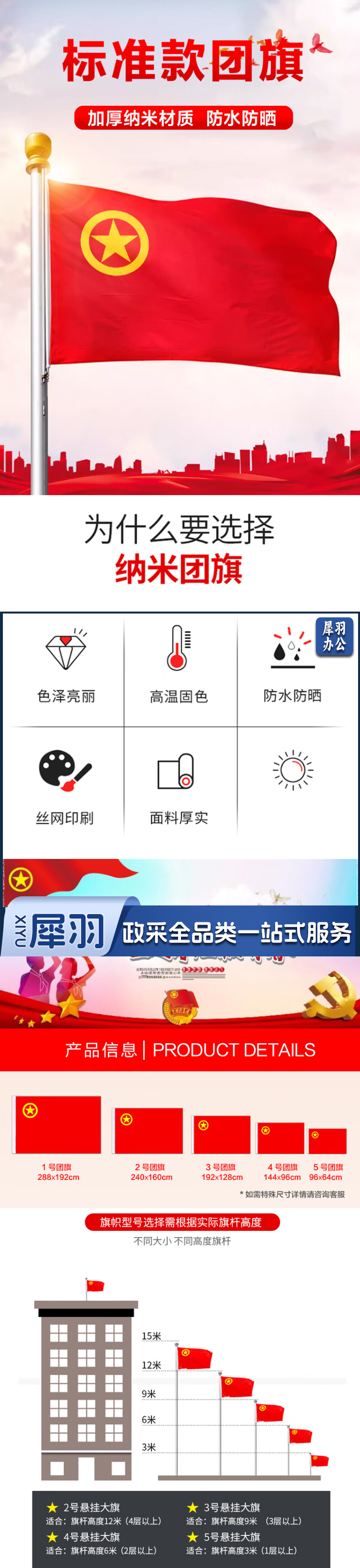 欧唛|oumai 团旗中国共青团团旗 加厚标准款手持纳米防水团旗一面 3号团旗192*128CM