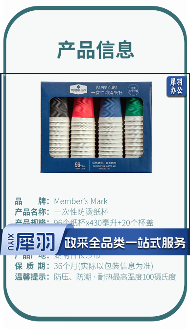 一次性防烫纸杯 430ml*96+20个杯盖