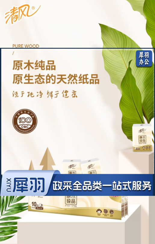 面巾纸 清风 手帕纸原木纯品系列3层8张90包纸巾面巾纸整箱